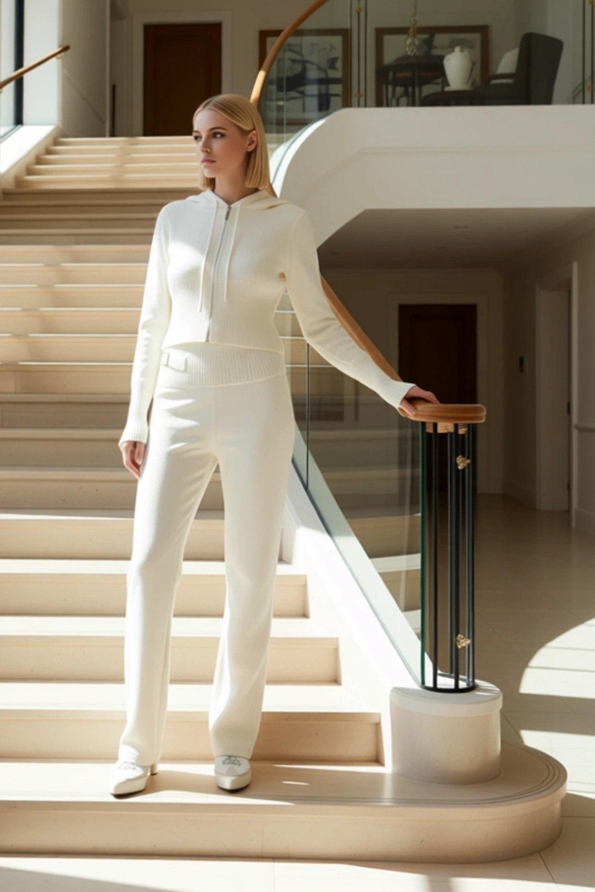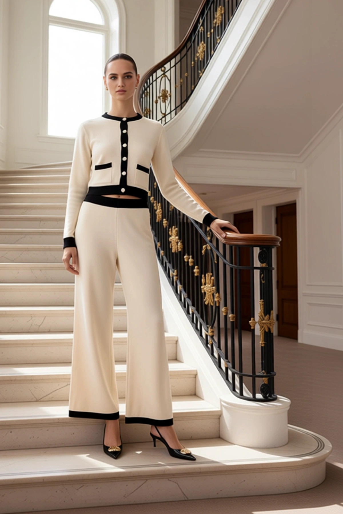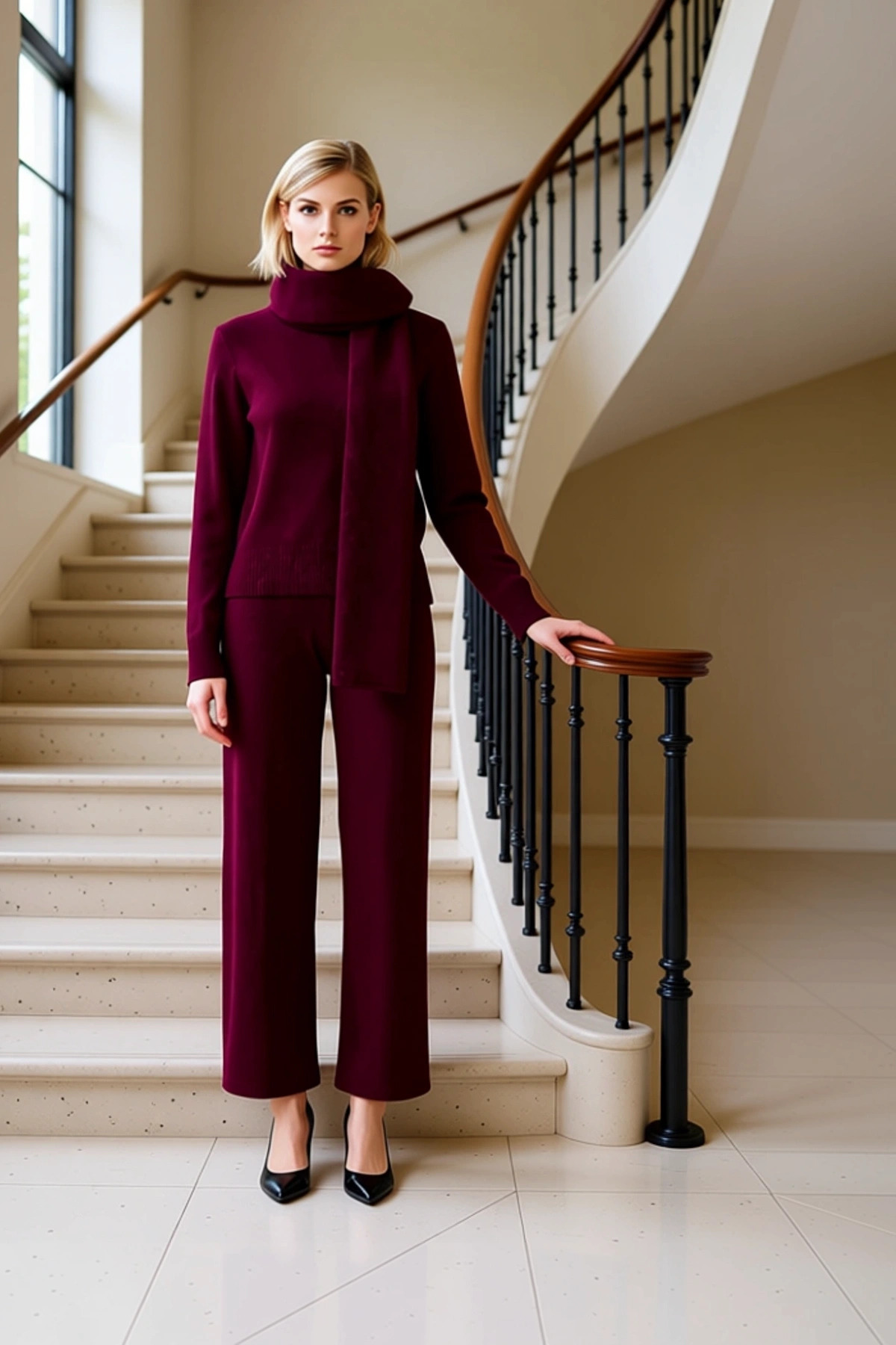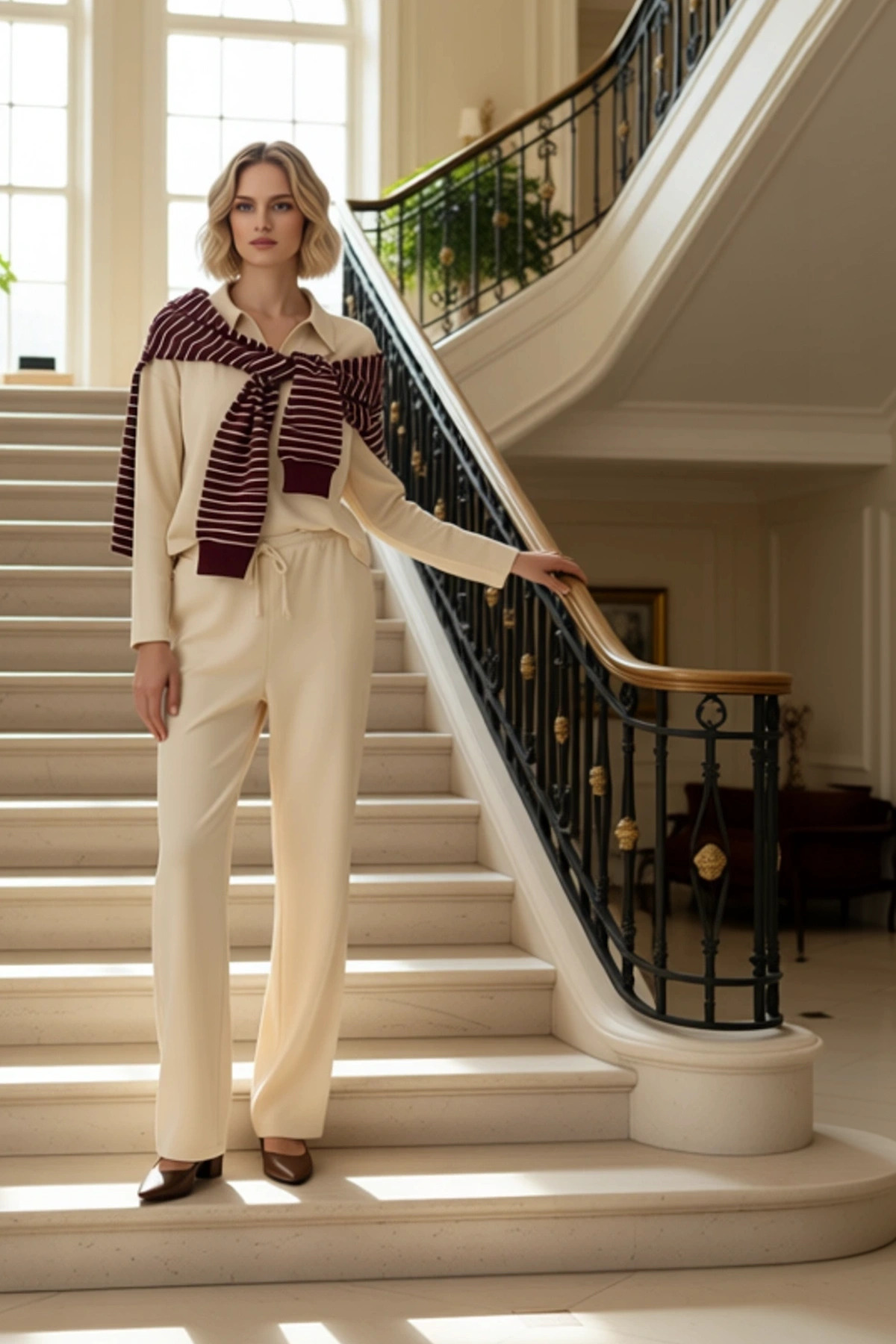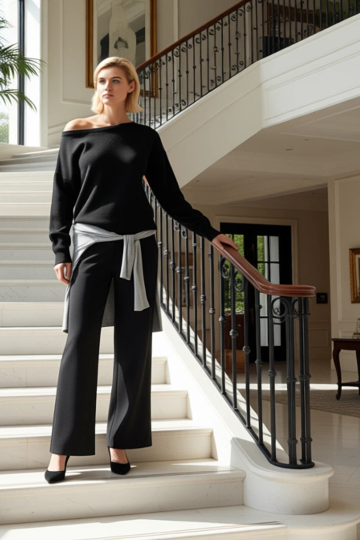Kadınların Şıklığını Tamamlayan Kayık Yaka Triko Kazak Ve Geniş Paça Pantolon Takımı Günlük