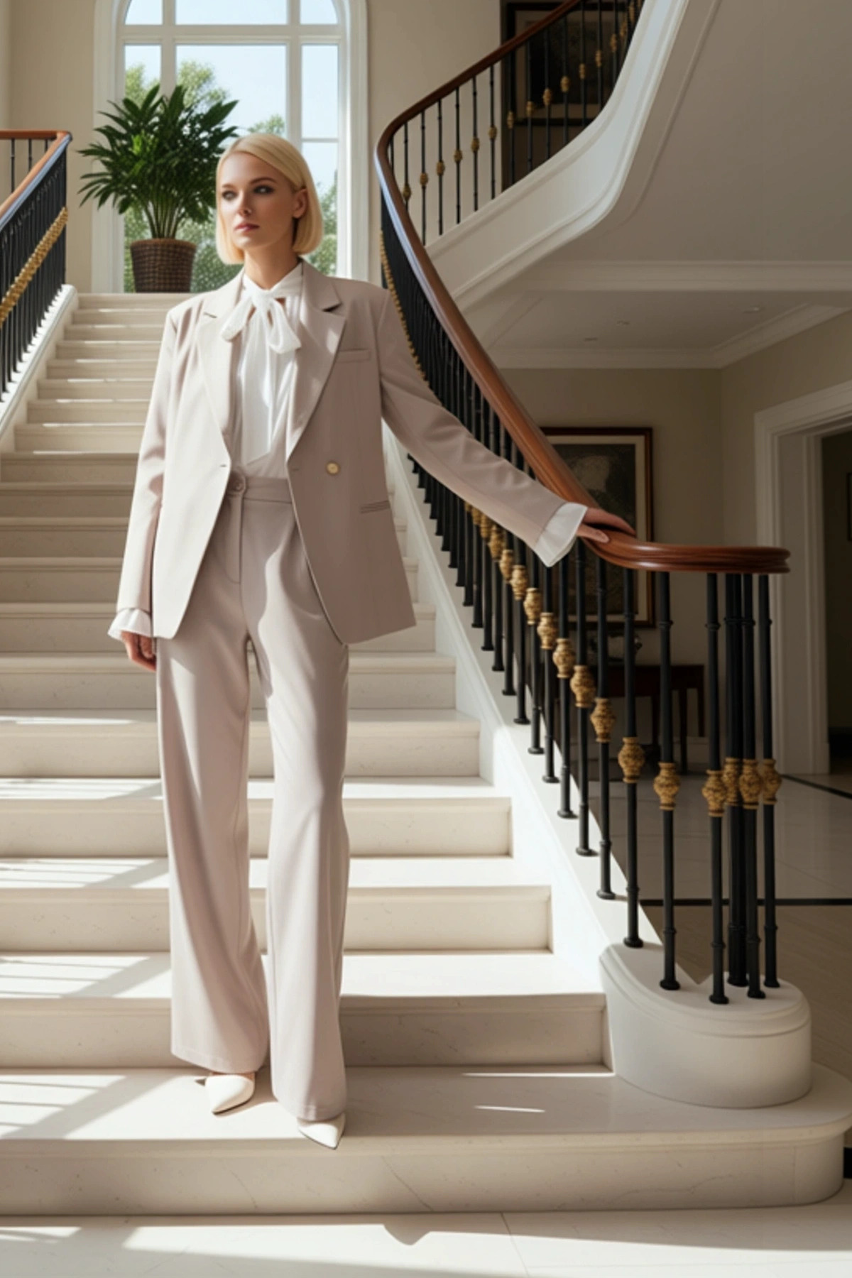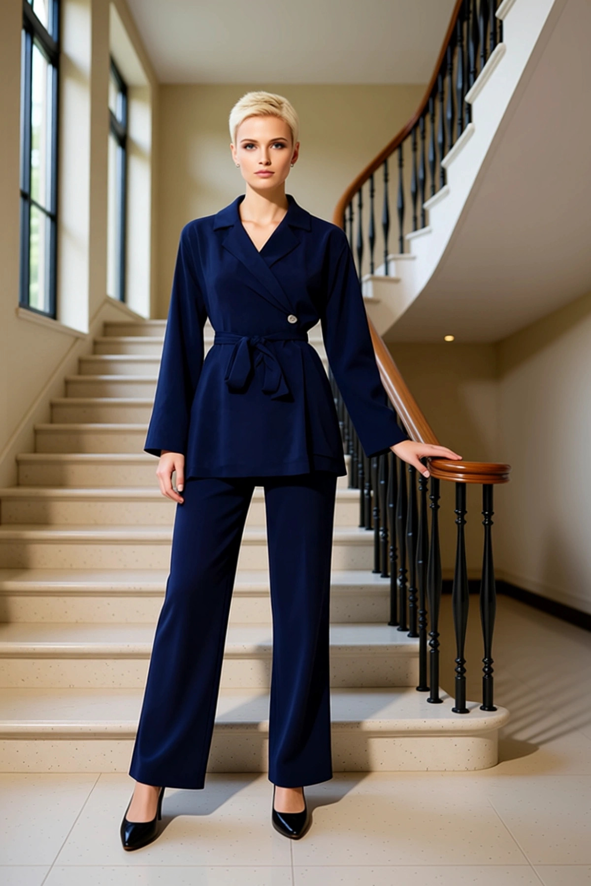 Kadın Alt Üst Modern Kruvaze Yaka Uzun Kollu Gömlek Ve Rahat Kesim Geniş Paça Pantolon Takım