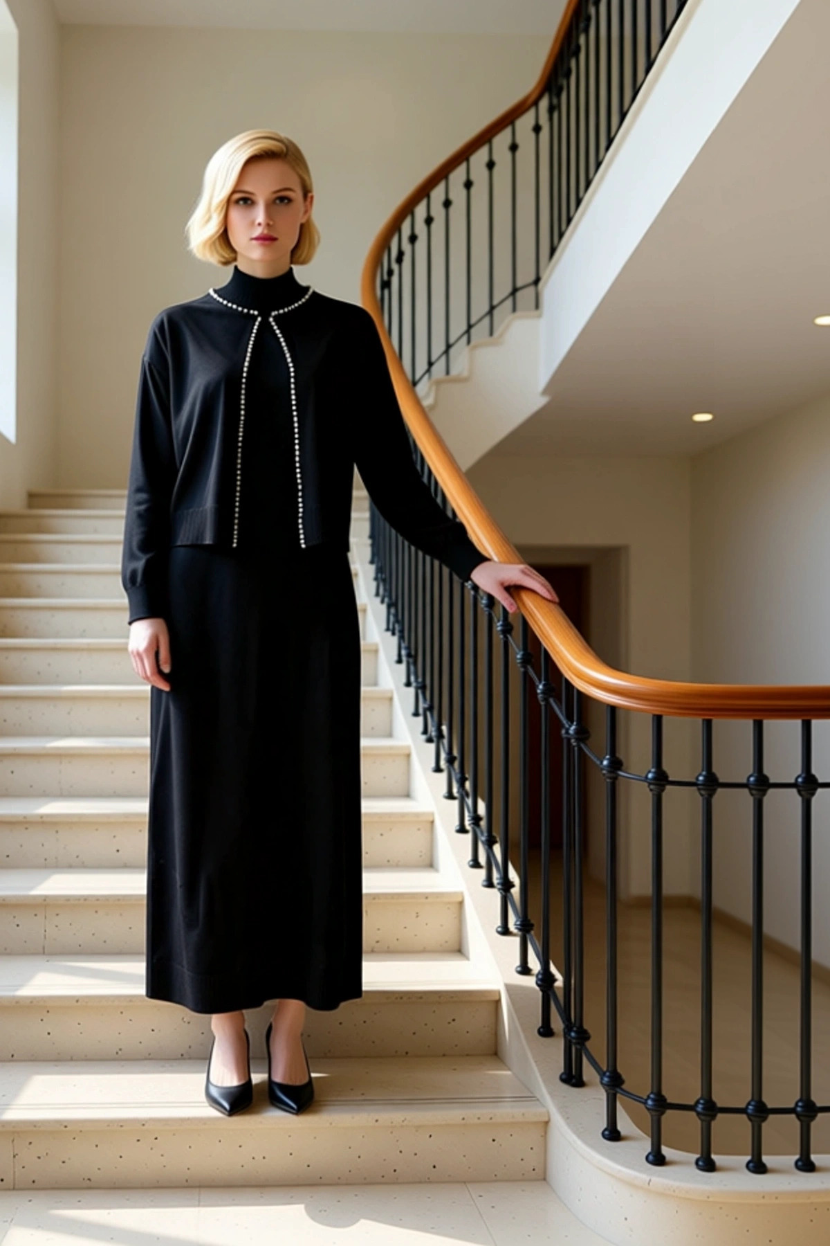 Kadın Alt Üst İnci Detaylı Triko Elbise Ve Kısa Hırka İkili Takım Zamansız Zarafet Ve Konforlu