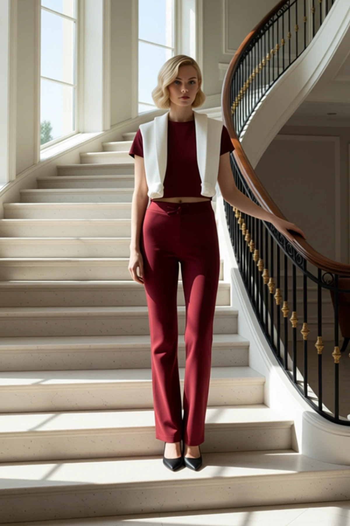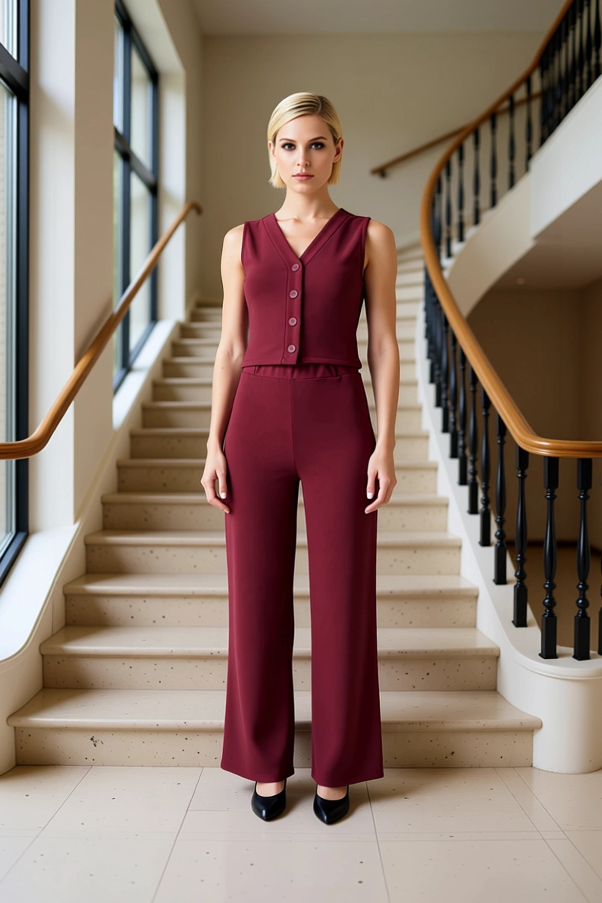 Kadın Alt Üst Dokuma Kırçıllı Yelek Ve Geniş Paça Pantolon Takımı Zamansız Ve Konfor Sunar Şık