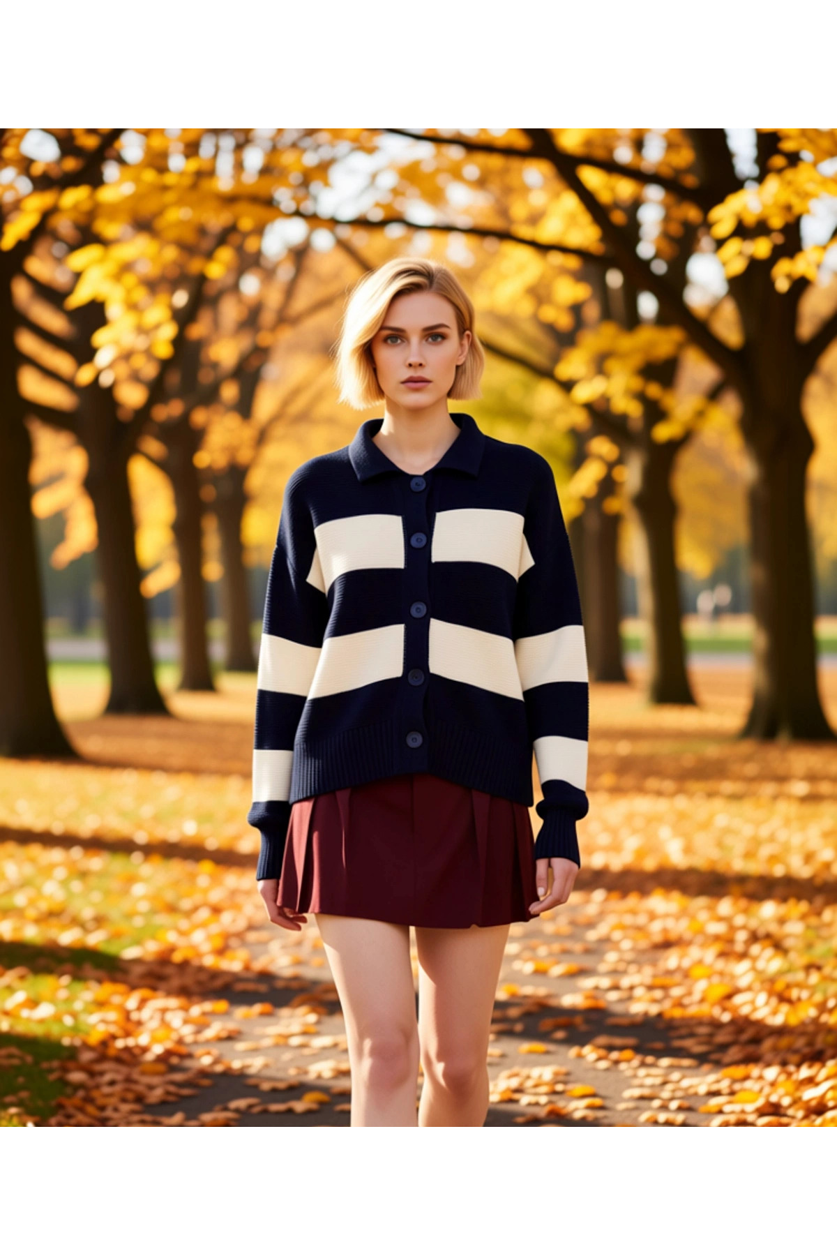 Genç Kadın Çizgili Polo Yaka Triko Hırka Konforlu Selanik Örgü Dokusuyla Günlük Şıklığınıza Yeni Bir