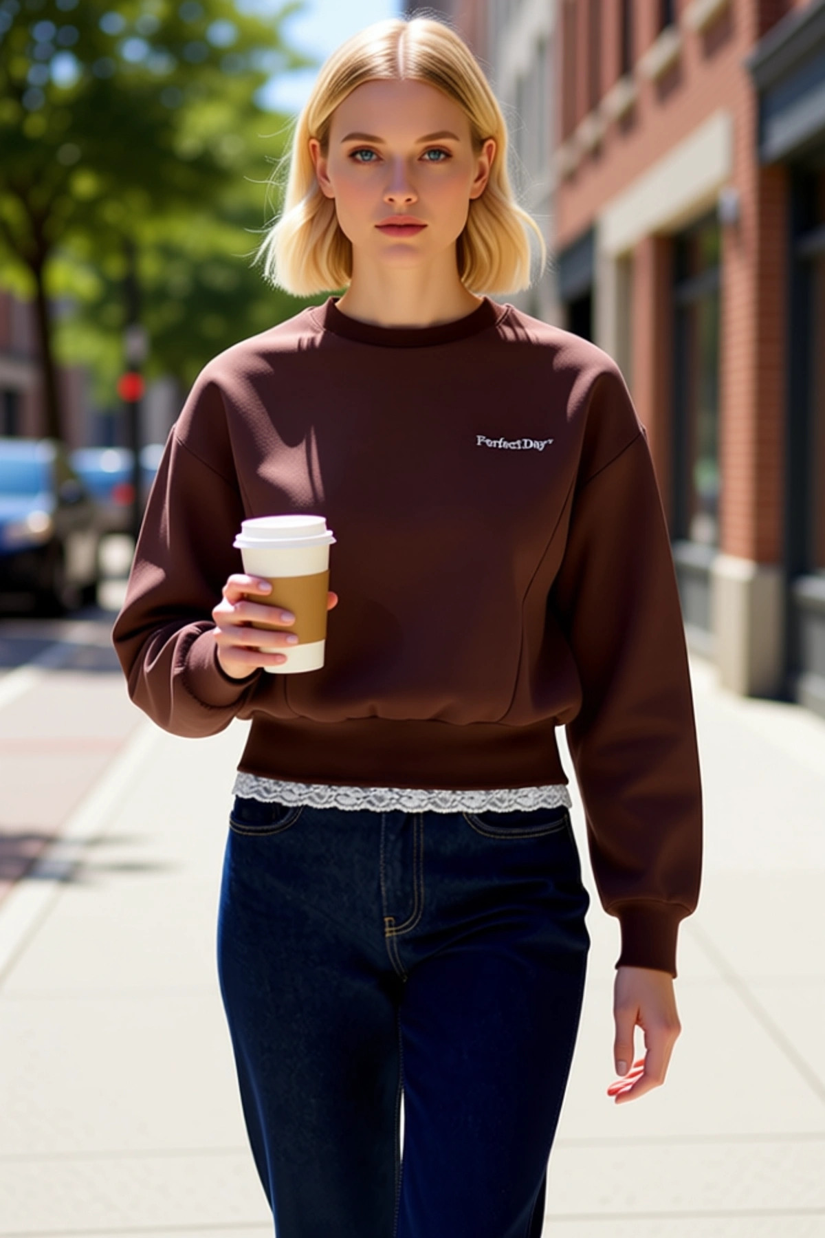 Kadın Bisiklet Yaka Standart Kol Regular Kalıp Slogan Nakışlı Sweatshirt Fonksiyonel Rahat