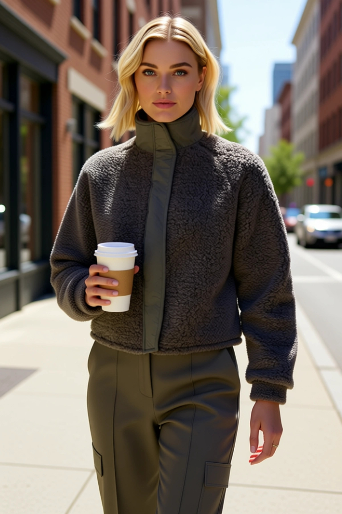 Kadın Dik Yaka Düşük Kol Fermuarlı Peluş Kalın Örme Sweatshirt Fonksiyonel Dayanıklı Rahat