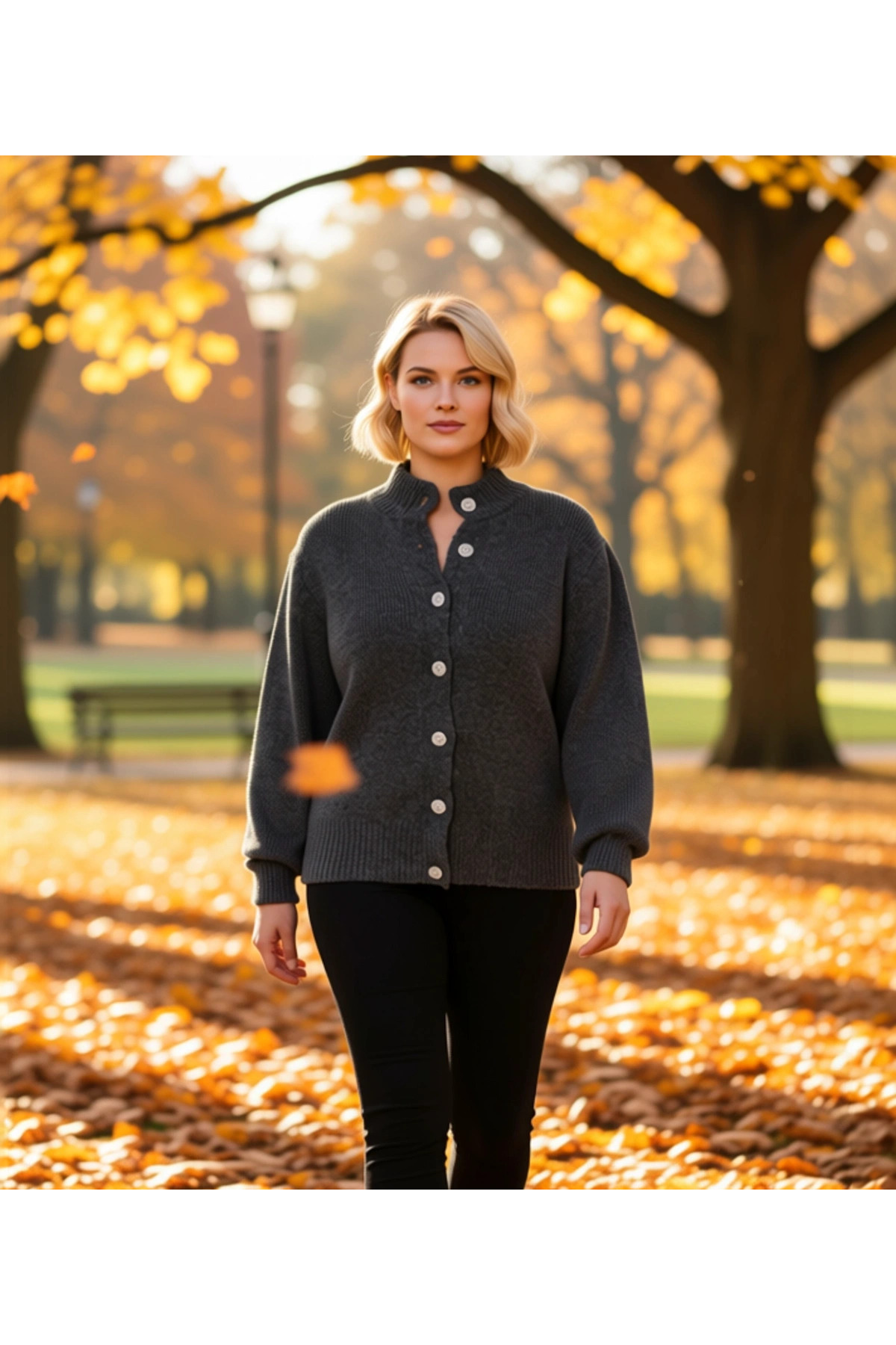 Kadınlara Özel Düğmeli Bisiklet Yaka Triko Süveter ve Geniş Paça Pantolon Takımı Modern Görünüm