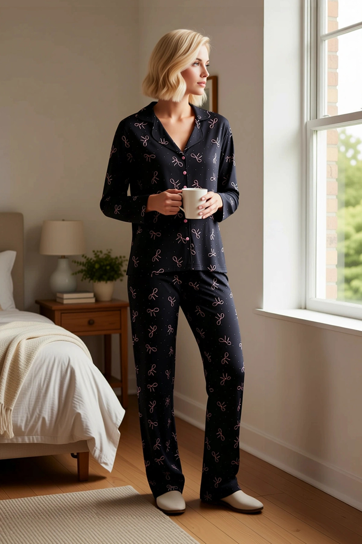 Kadın Gömlek Yaka Standart Kol Regular Kalıp Pijama Takımı Fonksiyonel Kaliteli 0 Pamuk