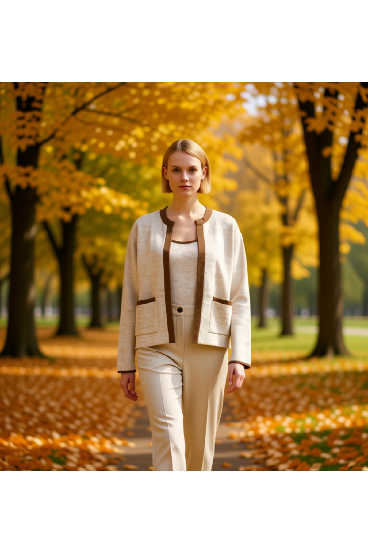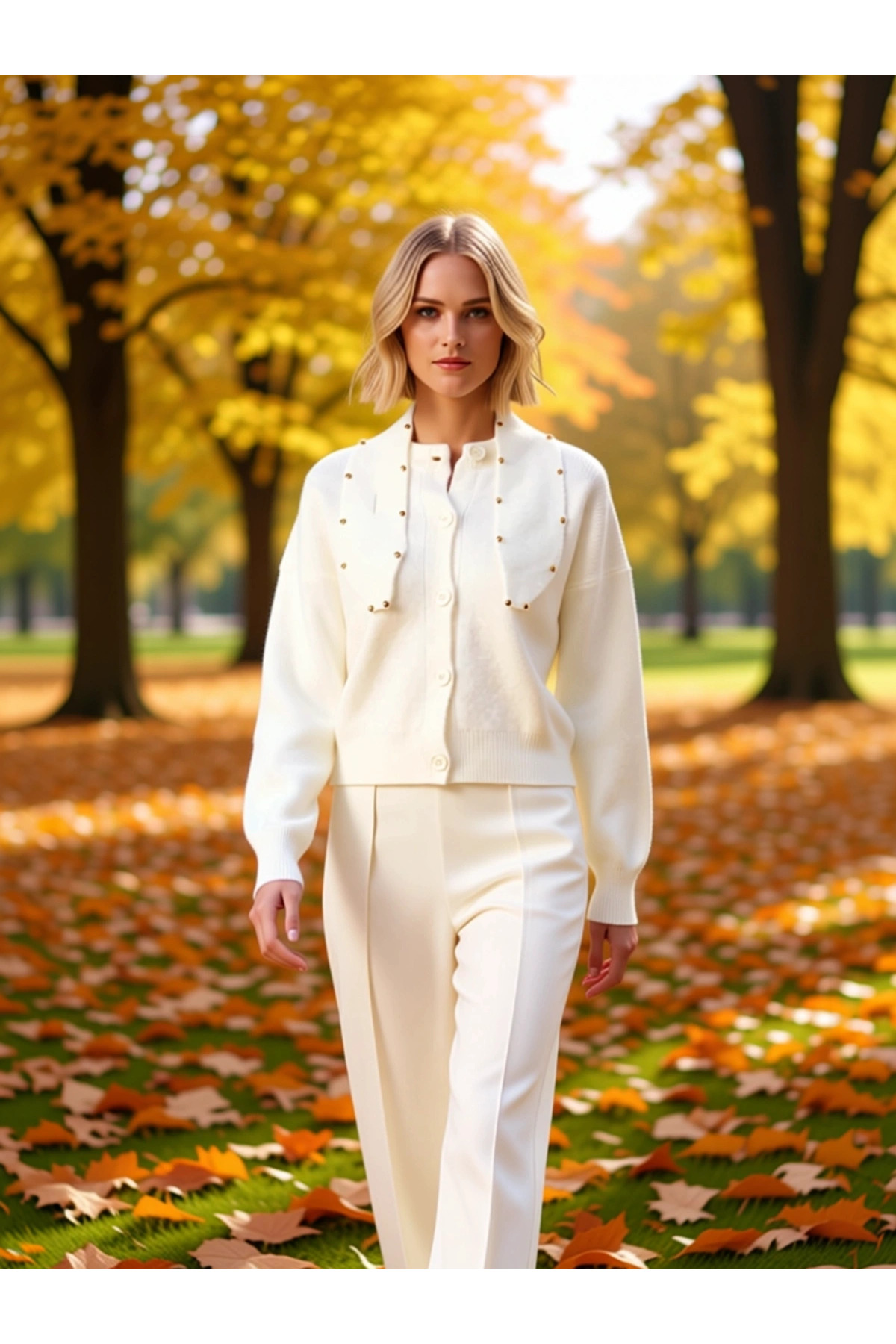 Kadın Yumuşak Dokulu Fitilli Crop Fermuarlı Triko Hırka Polo Yaka Detaylı Konforlu Günlük Şıklık