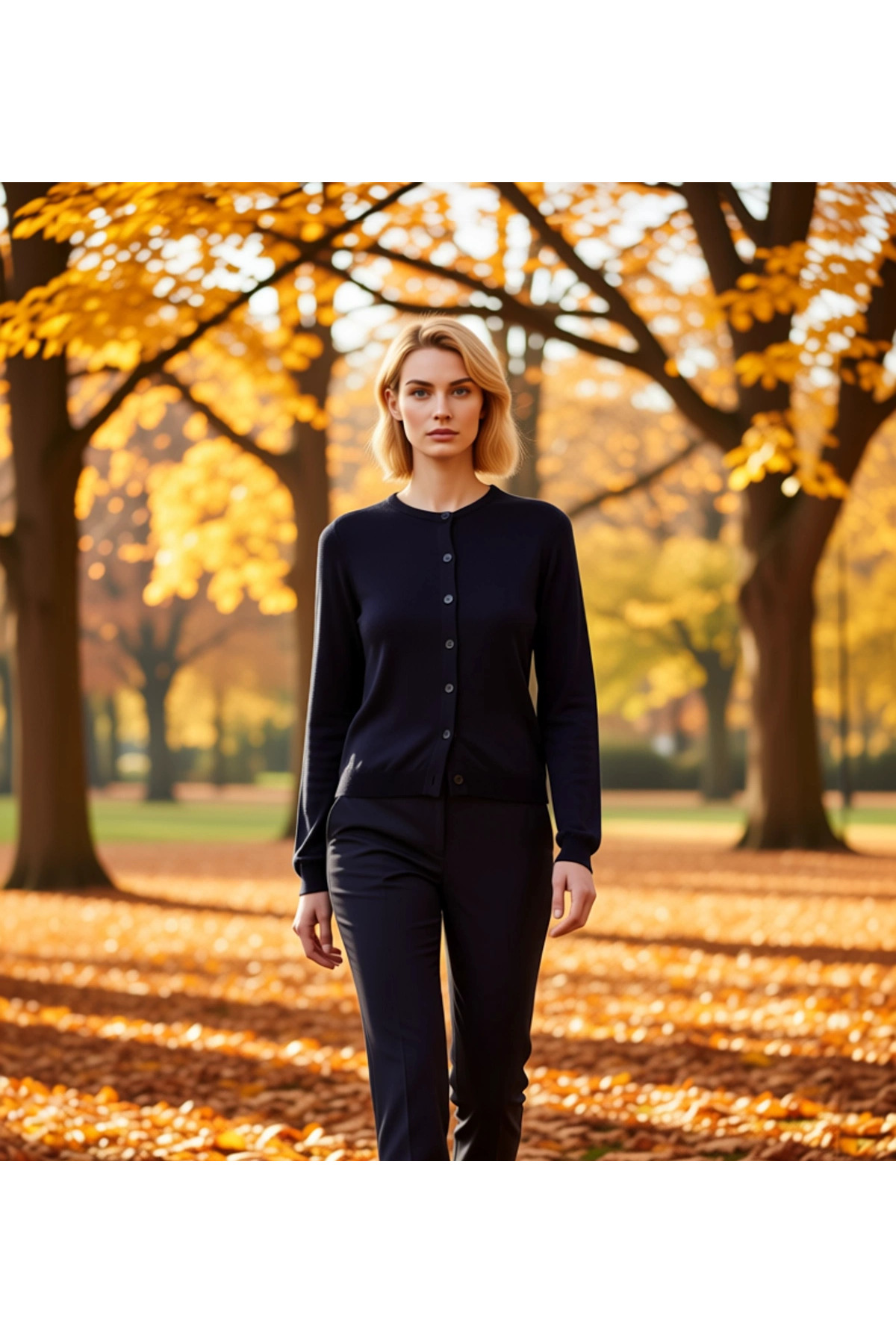 Kadın Regular Fit Bisiklet Yaka Düğmeli Triko Hırka Uzun Kollu Basic Kesim Konforlu Günlük Stil