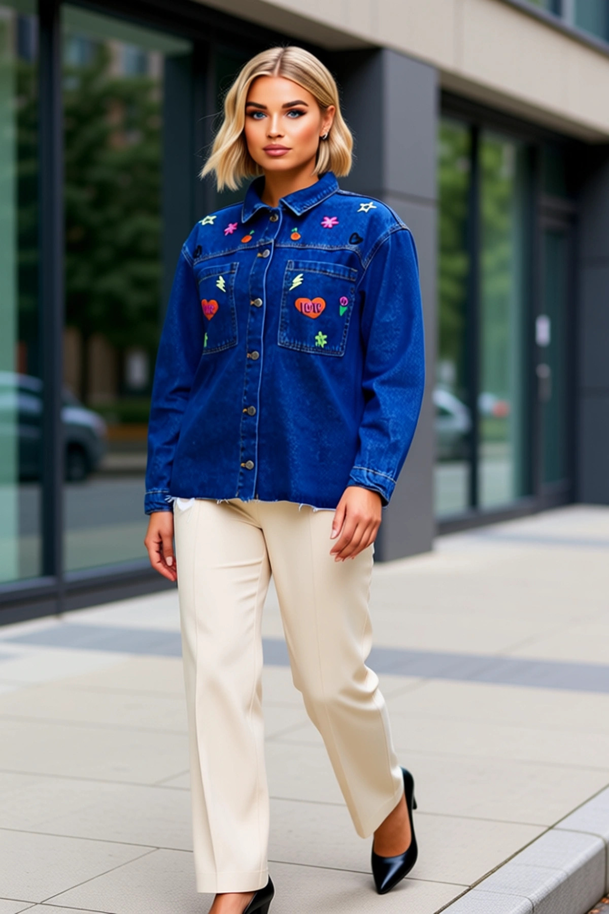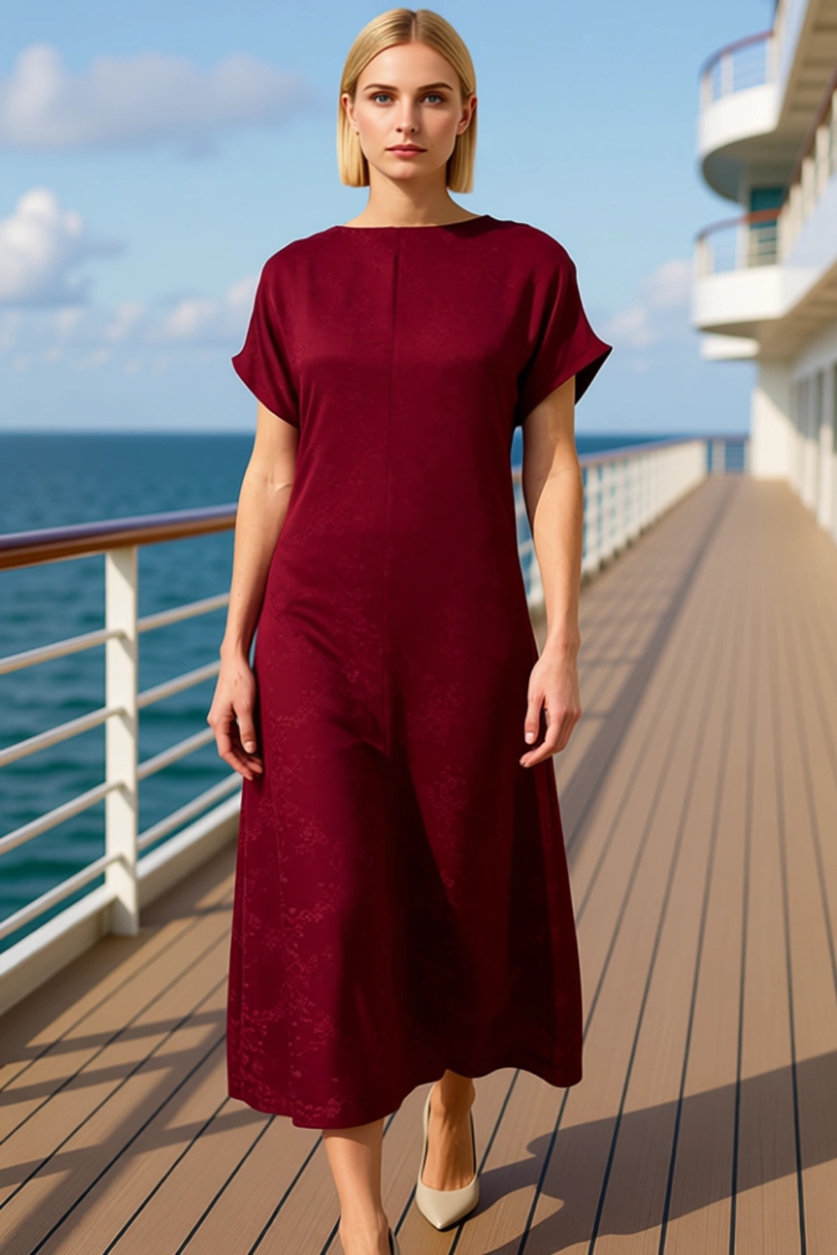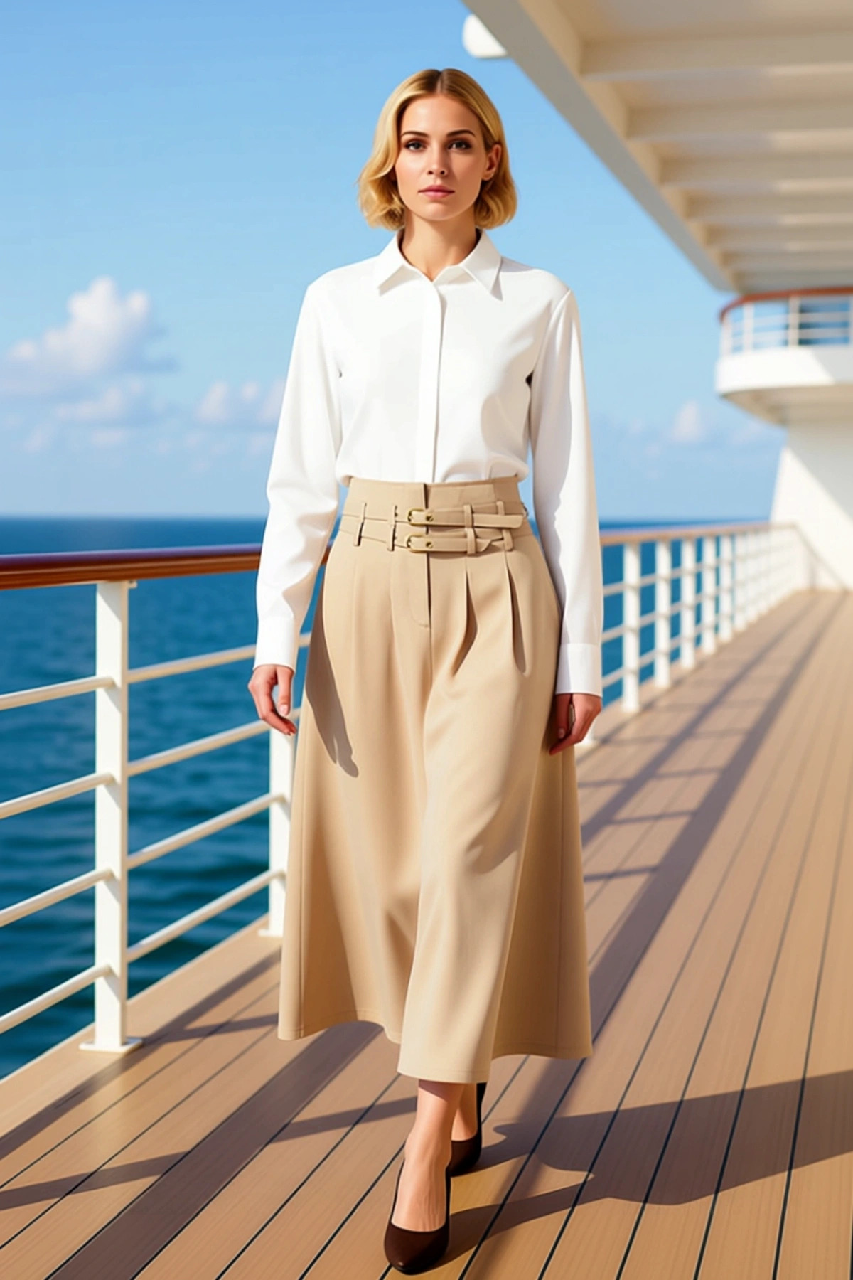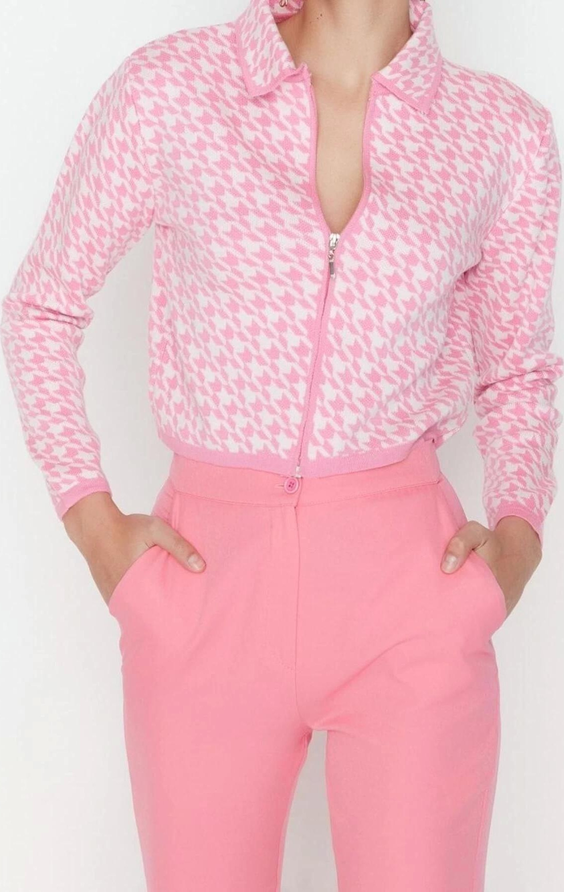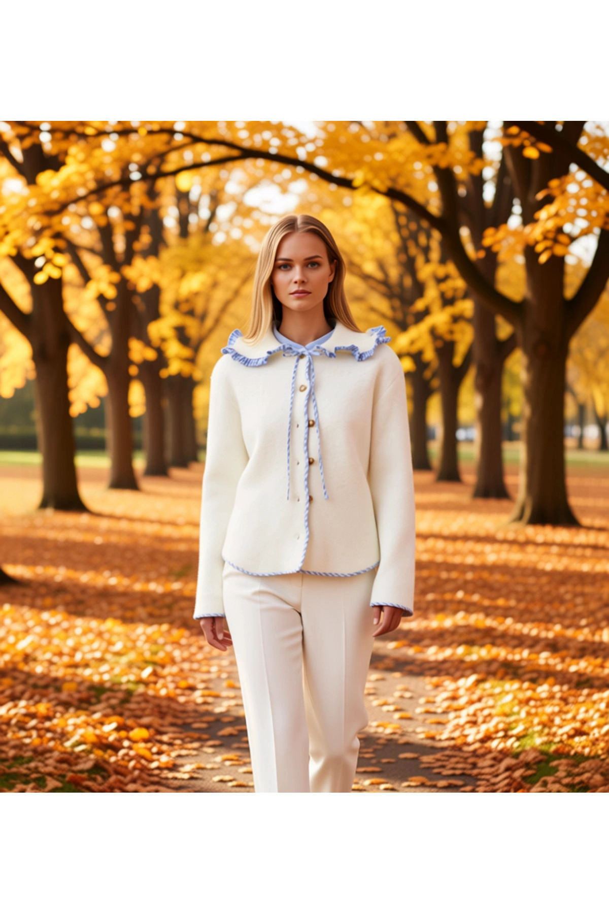 Kadın Alt Üst Büyük Beden Dokuma Kumaş Uzun Kollu Düğmeli Tunik Geniş Paça Pantolon Takımı