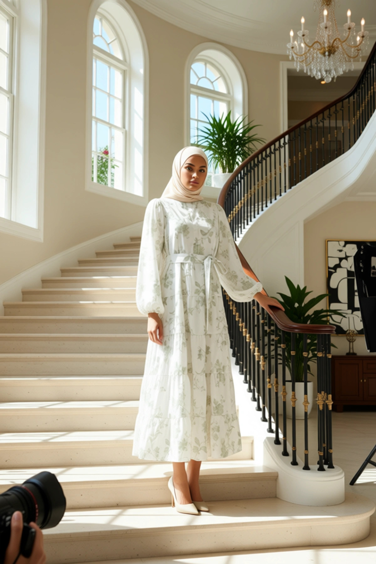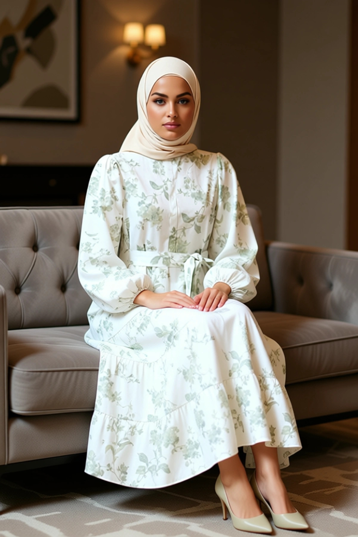 Bu maxi elbise, %51 pamuk ve %49 polyester karışımı terrycotton kumaşıyla üretilmiştir.; Dokuma kumaş yapısı sayesinde hem dayanıklı hem de nefes alabilir bir yapı sunar.; Elbisenin genelinde zarif bir çiçek deseni .; Skater kalıbı, vücuda oturan üst kısmı ve genişleyen eteği ile hareket özgürlüğü sağlar.; Bu özel tasarım, günlük kullanım için ideal olup, şıklığı ve konforu bir arada sunar.; Elbisenin astarsız olması, özellikle sıcak havalarda serin bir kullanım deneyimi vaat eder.; Maxi boyu ve fırfırlı eteği, romantik bir silüet oluşturarak her ortamda dikkat çekmenizi sağlar.; Elbisenin dik yaka detayı, klasik bir görünüm sunarken, balon kol tasarımı modern bir dokunuş katmaktadır.; Uzun kolları, serin akşamlarda veya daha kapalı bir stil arayanlar için uygundur.; Kuşak detayı, bel kısmını vurgulayarak vücut hatlarını belirginleştirir ve istenirse çıkarılarak farklı bir görünüm elde edilebilir.; Terrycotton dokuma, kumaşa hafif bir doku kazandırır ve giyim konforunu artırır.; Cool & Comfort persona ile tasarlanan bu elbise, hem rahatlığı hem de stil sahibi duruşu önceliklendirenler için mükemmel bir seçenektir.; Yaz mevsimi için biçilmiş kaftan olan bu elbise, keten pantolonlar, şık etekler veya sandaletlerle kolayca kombinlenebilir.; Günlük bir görünüm için spor ayakkabılarla da tercih edilebilir.; Bu elbise, hem gündüz hem de akşam etkinliklerinde rahatlıkla kullanılabilir.; Ürünün bakımı için nazik yıkama önerilir.