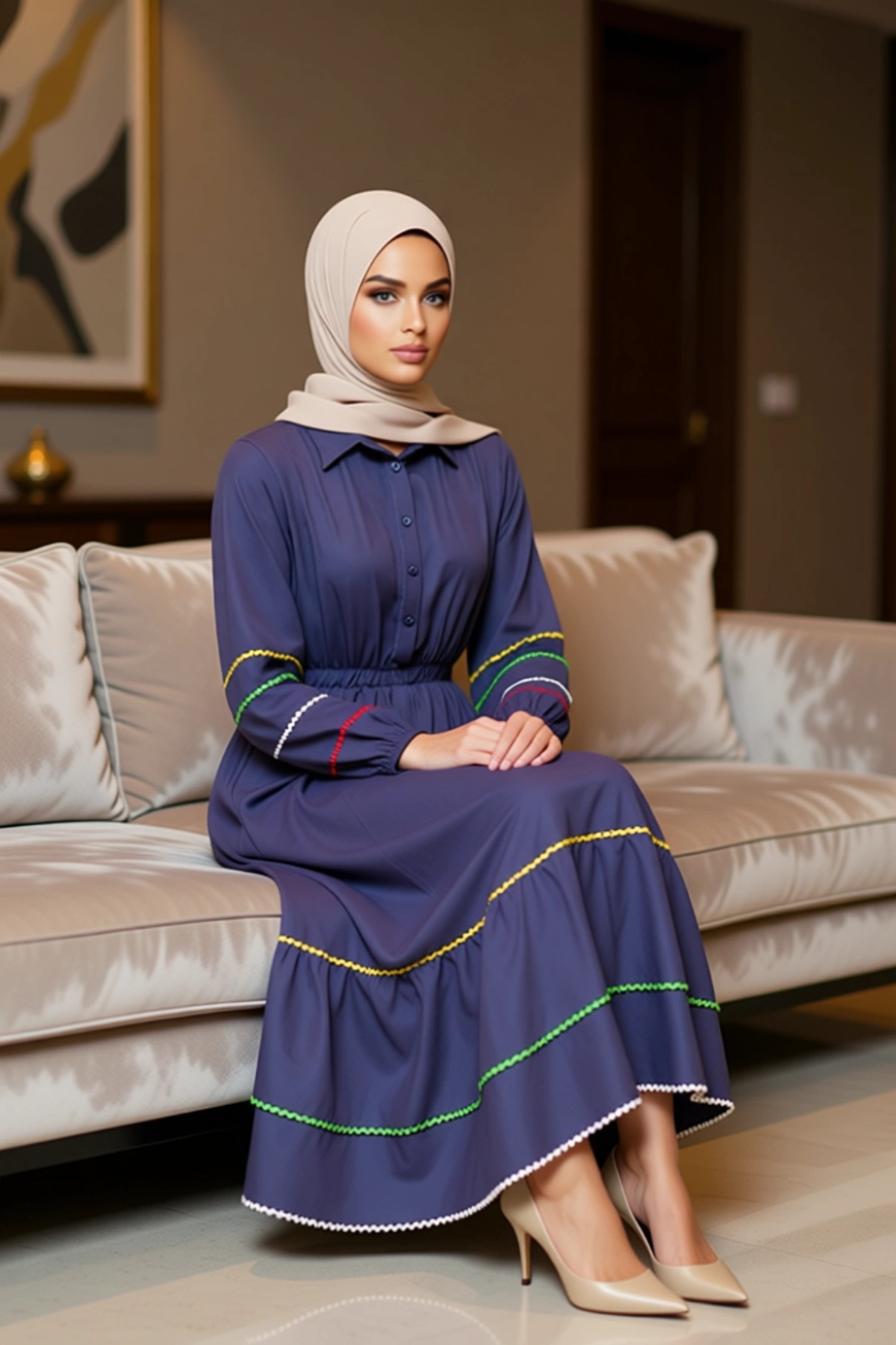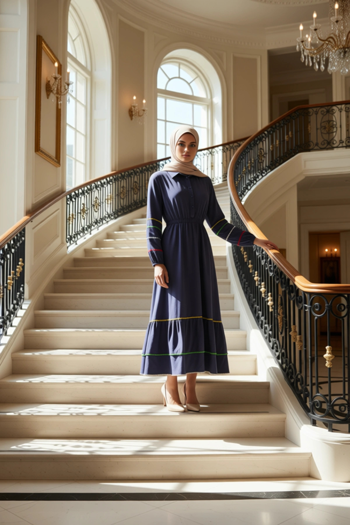 Bu elbise, rahat ve şık bir görünüm sunan shift kalıbıyla öne çıkıyor.; %60 pamuk ve %40 polyester karışımından oluşan dokuma kumaşı, hem nefes alabilirliği hem de dayanıklılığı bir araya getiriyor.; Kumaşın terrycotton dokuması, yumuşak bir dokunuş sağlarken, düz deseni ile zamansız bir stil vadediyor.; Elbisenin genel silüeti basic olup, uzun boyu ile zarif bir duruş sergiliyor.; Yarım patlı ön detayı ve kuşaklı bel kısmı, elbiseye modern bir dokunuş katıyor.; Bu elbise, günlük kullanım için ideal bir seçenek olup, rahatlığından ödün vermek istemeyenler için tasarlanmıştır.; Koleksiyonun parçası olarak, hem şıklığı hem de konforu bir arada sunmayı hedefliyor.
