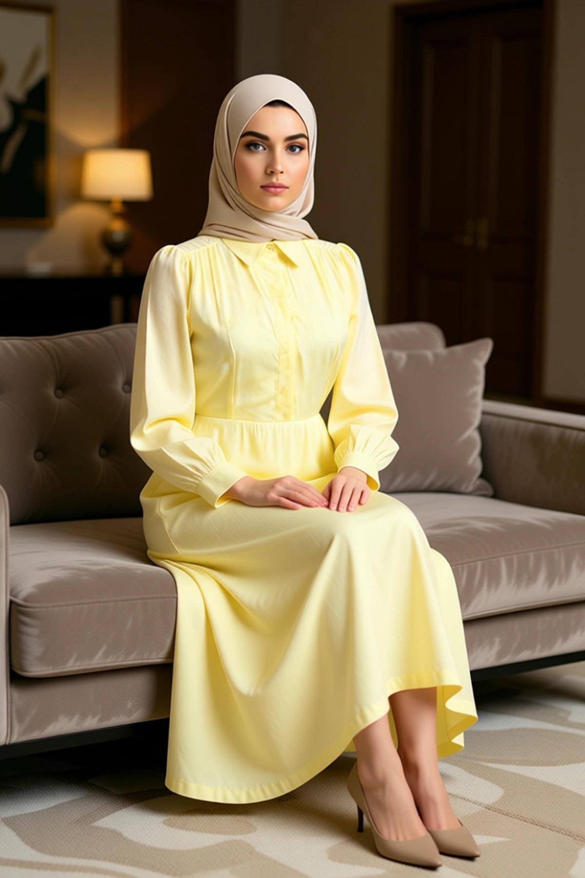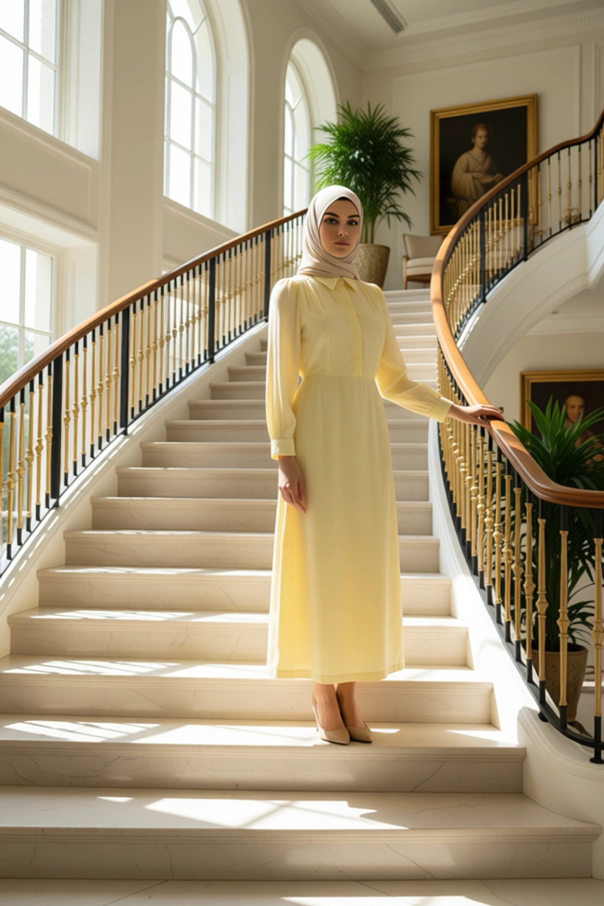 Bu midi boy elbise, skater kalıbıyla zarif bir siluet sunar.; %62 viskoz ve %38 polyester karışımından oluşan dokuma kumaşı, jakar deseniyle zenginleştirilmiştir.; Düz desenli yapısı, her ortama uyum sağlayacak şekilde tasarlanmıştır.; Astarsız olması, özellikle yaz ayları için hafif ve ferah bir kullanım sunar.; Bu elbise, hem gündüz hem de gece davetlerinde şıklığınızı ön plana çıkaracak bir seçenektir.; Koleksiyonun parçası olarak, Ramazan ayının ruhuna uygun bir zarafet taşır.; Persona olarak smart bir görünüm hedeflenerek üretilmiştir.; Elbisenin gömlek yaka detayı, klasik bir dokunuş katarken, standart kol tipi ve uzun kol boyu ile tam bir uyum içindedir.; Skater kalıbı, vücuda oturan üst kısmı ve hafifçe genişleyen eteği ile hareket özgürlüğü sağlar.; Dokuma kumaşın kalitesi ve jakar deseninin inceliği, ürüne sofistike bir hava katar.; Hafifliği ve nefes alabilen yapısı sayesinde gün boyu konforlu bir kullanım sunar.; Bu elbise, hem günlük kullanımda hem de özel günlerde rahatlıkla tercih edilebilir.; Şık ve modern tasarımıyla gardırobunuzun vazgeçilmez parçalarından biri olacaktır.; Yaz mevsimine uygun olarak tasarlanan bu elbise, keten pantolonlar, şık etekler ve topuklu sandaletlerle mükemmel bir uyum yakalar.; Günlük kullanımda spor ayakkabılarla da kombinlenebilir.; Elbisenin bakımı için özel bir talimat gerektirmeyen yapısı, kullanım kolaylığı sağlar.; Üretim yeri Türkiye’dir.; Bu zarif elbise, her kadının dolabında bulunması gereken şık ve fonksiyonel bir parçadır.