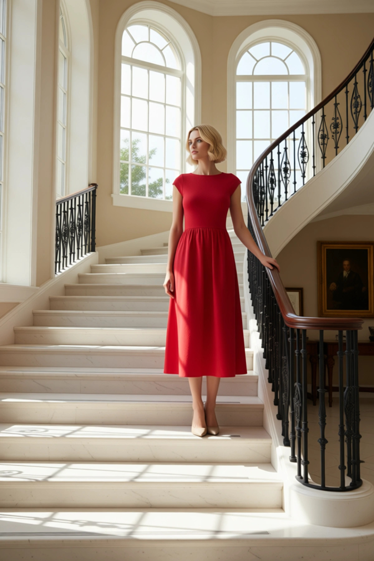 Bu midi boy elbise, rahat ve şık bir görünüm sunan skater kalıbıyla öne çıkıyor.; Düz deseni ve terrycotton dokuması, kumaşa hoş bir doku katıyor.; Elbisenin materyal bileşeni %66 polyester, %24 pamuk, %8 viskoz ve %2 elastan olup, bu karışım hem dayanıklılık hem de esneklik sağlıyor.; Günlük kullanıma uygun olan bu elbise, serin tutan yapısıyla yaz ayları için ideal bir seçenek olarak tasarlanmıştır.; Astarsız olması da hafifliğini destekliyor ve hareket özgürlüğü sunuyor.; Kayık yaka tasarımı zarif bir görünüm sunarken, kolsuz kesimi sıcak havalarda ferahlık sağlıyor.; Elbisenin genel silueti, vücuda oturan üst kısmı ve genişleyen etek kısmı ile dikkat çekiyor.; Bu kesim, hem rahat bir kullanım sunuyor hem de feminen bir duruş sergiliyor.; Terrycotton dokuması, kumaşın yumuşaklığını ve nefes alabilirliğini artırarak gün boyu konfor sağlıyor.; Esnek yapısı sayesinde hareketlerinizi kısıtlamadan rahatça kullanabilirsiniz.; Bu elbise, yaz mevsimi için mükemmel bir seçimdir.; Günlük hayatta jean pantolonlar, şortlar veya eteklerle rahatlıkla kombinlenebilir.; Daha şık bir görünüm için topuklu sandaletler veya espadriller ile tamamlanabilir.; Spor ayakkabılarla ise daha rahat ve spor bir stil elde edilebilir.; Bakımı kolay olan bu elbise, uzun ömürlü kullanımı için özel yıkama talimatlarına dikkat edilerek temizlenmelidir.