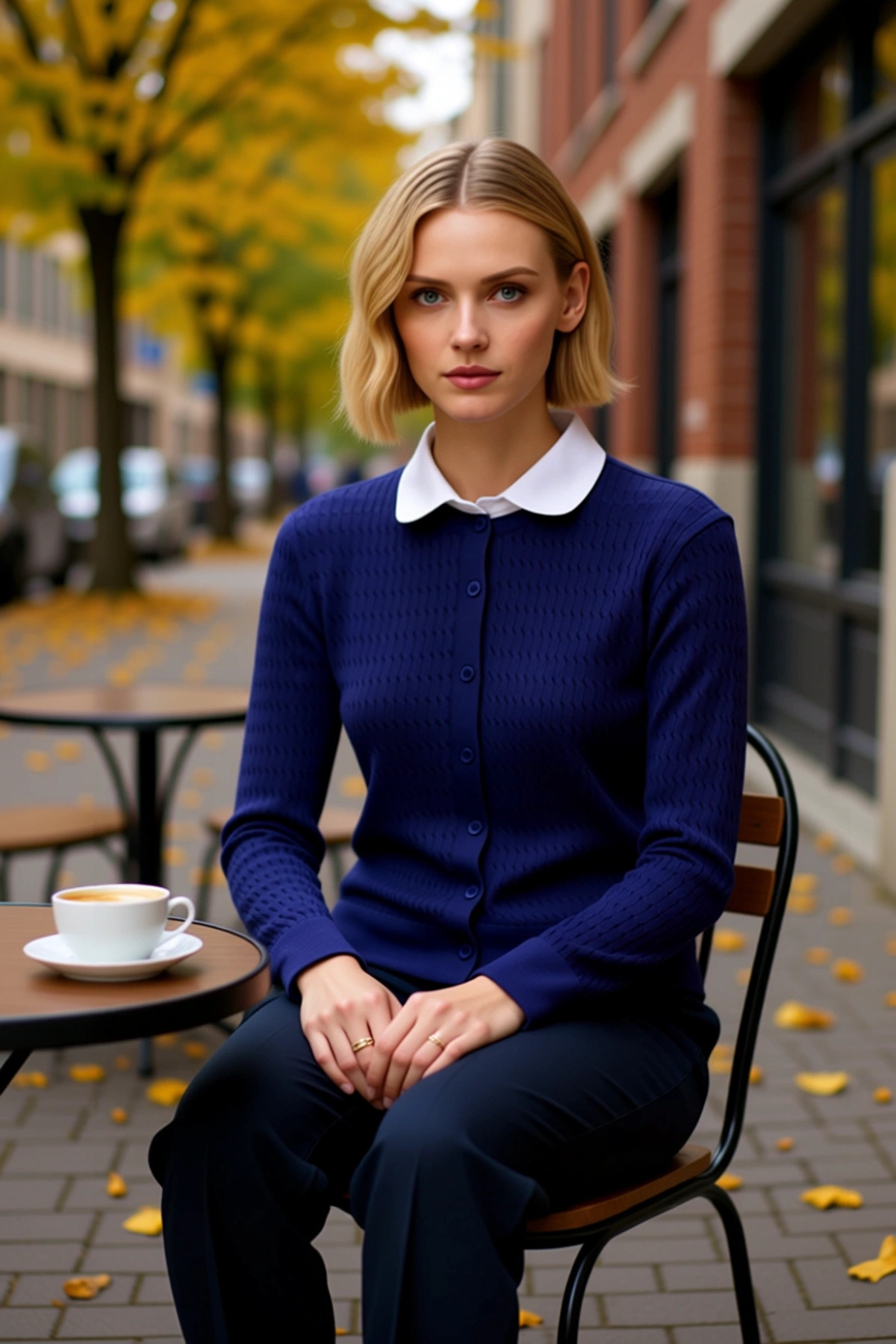 Bu şık kadın triko hırka, gardırobunuzun vazgeçilmez parçalarından biri olacak.; Merserize görünümlü özel ipliklerle üretilmiş olup, %50 viskoz, %28 polyester ve %22 poliamid karışımı sayesinde hem yumuşak bir dokuya hem de dayanıklılığa sahiptir.; Lacivert rengi ve zarif saç örgüsü deseni ile dikkat çeken bu hırka, her tarza uyum sağlayacak basic bir silüete sahiptir.; Regular kalıbı ve orta kalınlığı ile hem şık hem de rahat bir kullanım sunar.; Günlük kullanım için ideal olan bu parça, cool ve konforlu bir persona yaratmanıza yardımcı olur.; Tek plaka dokuma tekniği ile özenle hazırlanmıştır.; Ürün, klasik bir gömlek yaka tasarımına ve standart kesim kol detaylarına sahiptir.; Uzun kollu yapısı, soğuk havalarda ekstra sıcaklık sağlarken, basic kesimi sayesinde farklı kıyafetlerle kolayca kombinlenebilir.; Triko kumaşın sunduğu esneklik, hareket özgürlüğü tanıyarak gün boyu üstün bir konfor vaat eder.; Bu hırka, hem şıklığından ödün vermek istemeyen hem de rahatlığına düşkün kadınlar için tasarlanmıştır.; Gömlek yakası, üzerine giyilen diğer kıyafetlerle uyumlu bir görünüm sunarken, düğmeli ön kısmı kolay giyip çıkarma imkanı tanır.; Bu parça, hem spor hem de klasik kombinlerinizde rahatlıkla kullanabileceğiniz çok yönlü bir parçadır.; Kış mevsimi için ideal bir seçim olan bu lacivert triko hırkayı, dar kesim pantolonlar, kalem etekler ve şık botlarla kombinleyebilirsiniz.; Beyaz bir gömlek ve loafer ayakkabılarla tamamlayarak ofis şıklığı yakalayabilir, jean pantolon ve spor ayakkabılarla ise daha rahat bir günlük stil oluşturabilirsiniz.; Ürünün dokusunu ve formunu korumak için nazikçe elde yıkamanız veya düşük ısıda makinede yıkamanız önerilir.; Ütüleme işlemini düşük ısıda yapmanız tavsiye edilir.