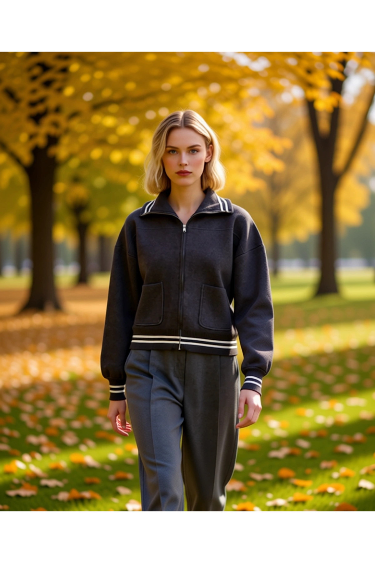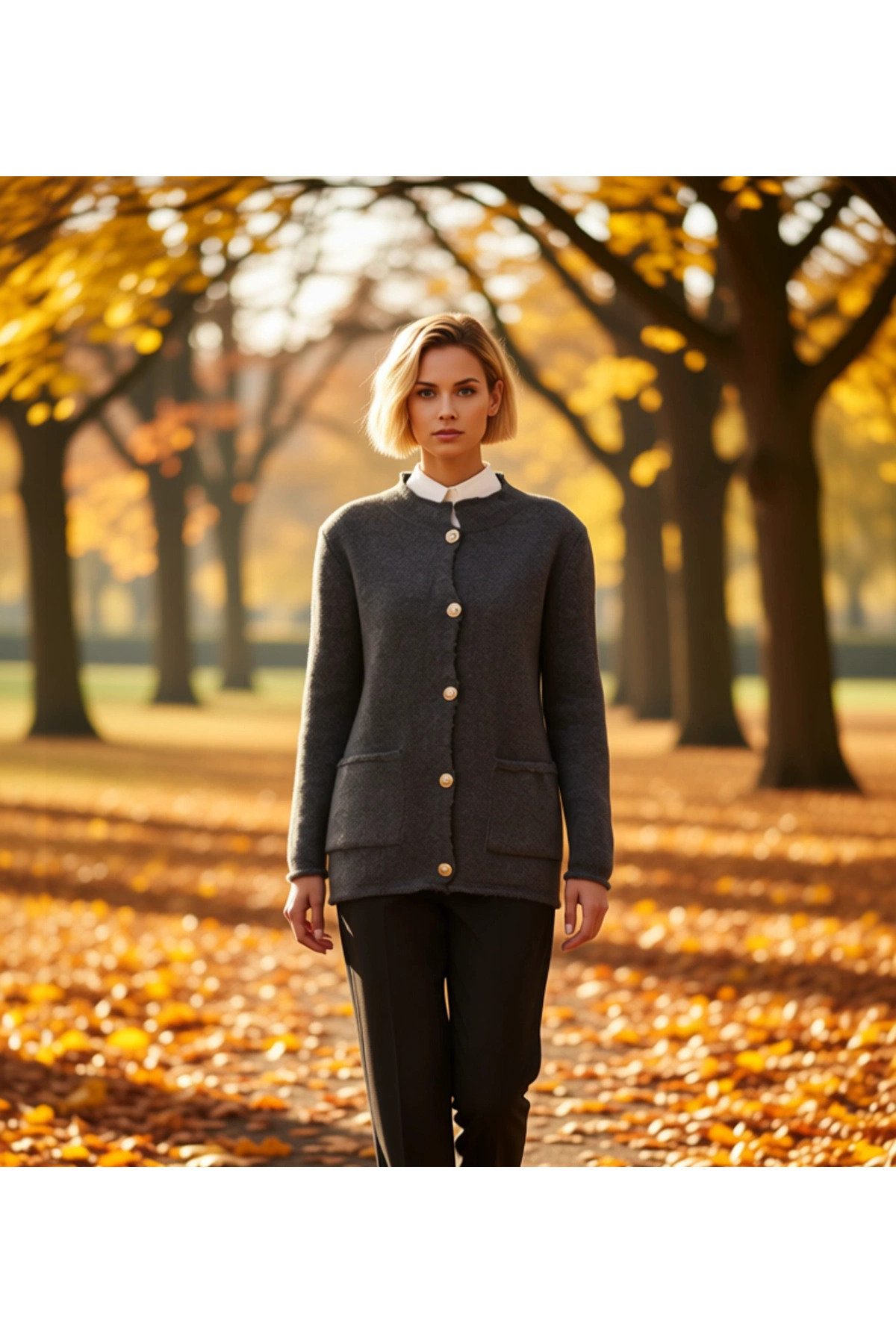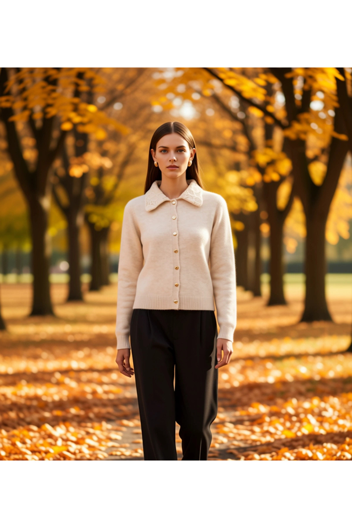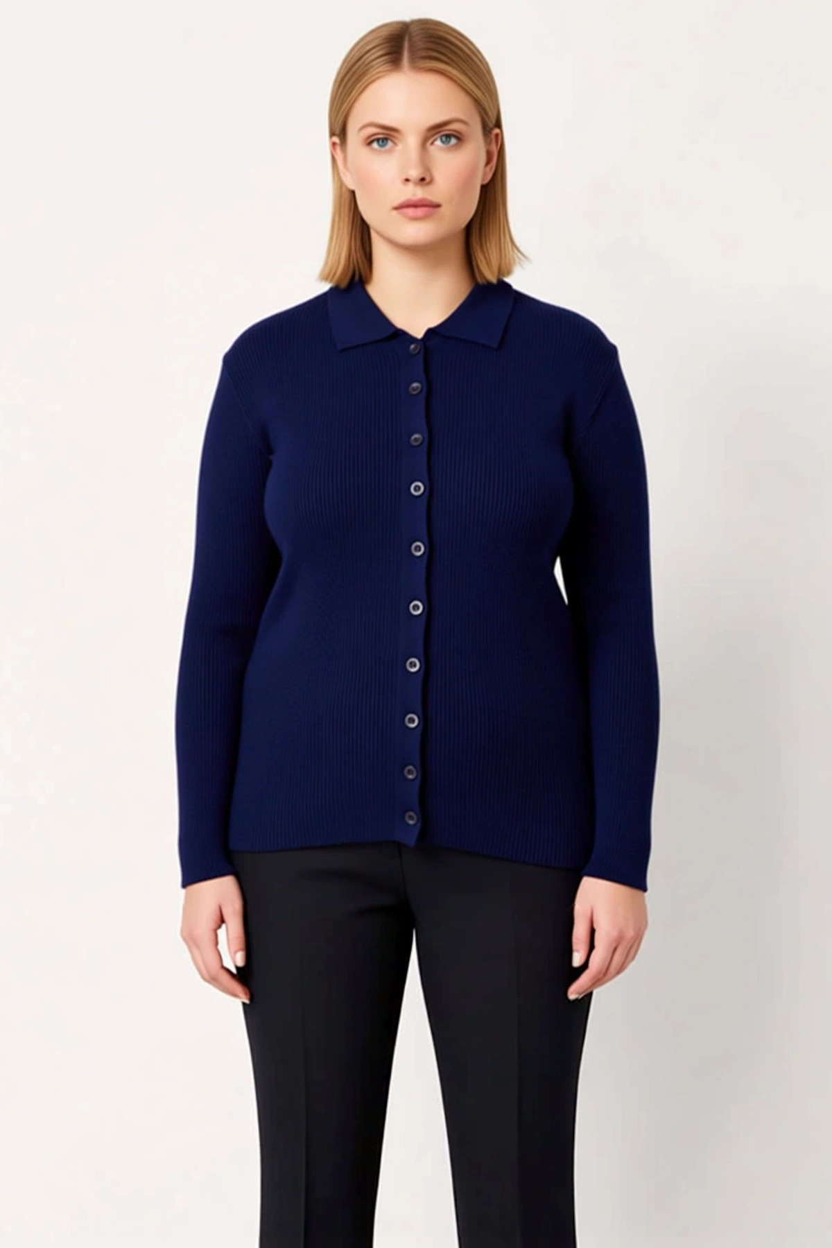 Kadın Oversize Kalıp Polo Yaka Düşük Kol Uzun Kollu Buklet Triko Hırka Rahat Ve Şık Bir Görünüm