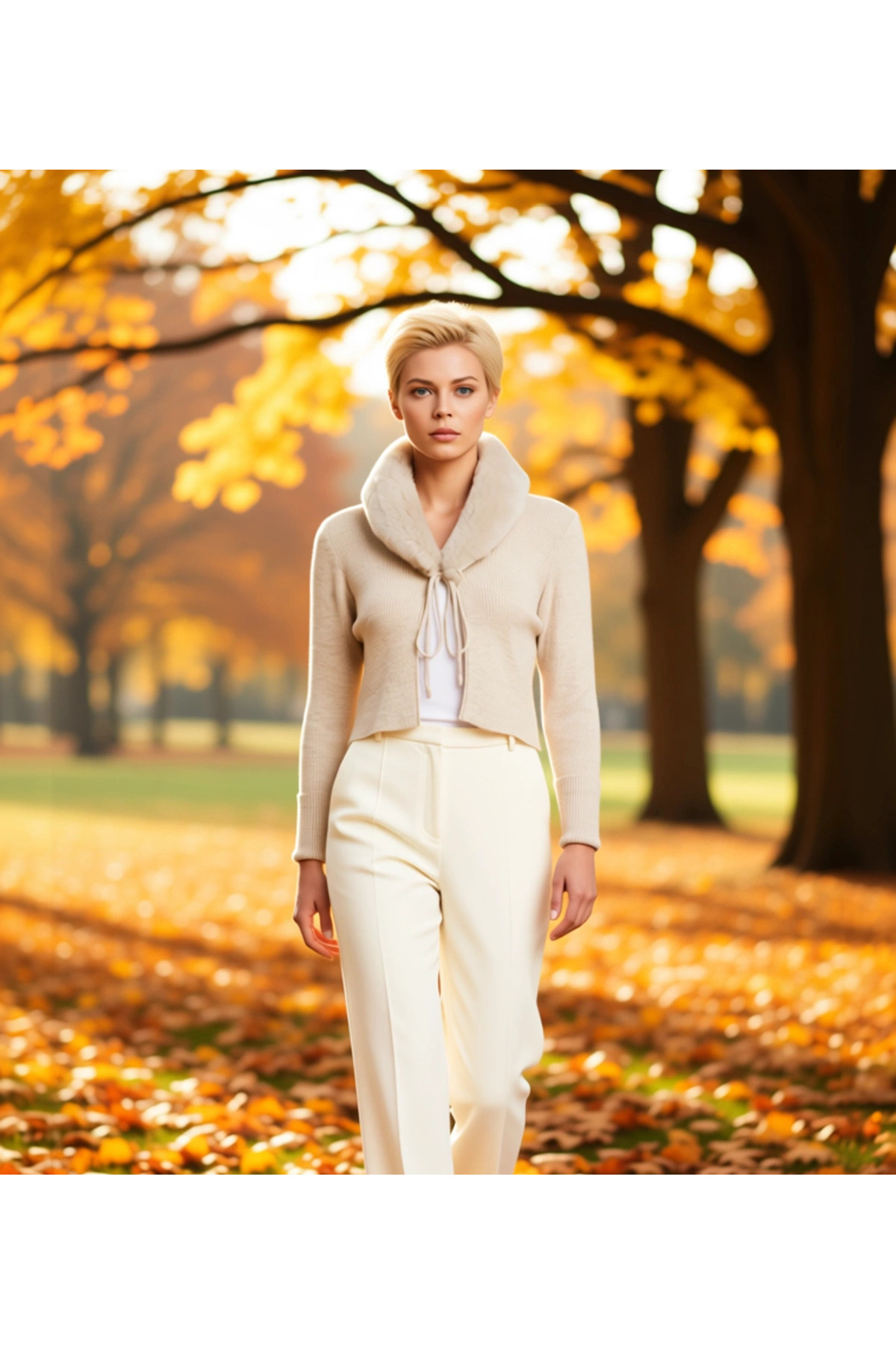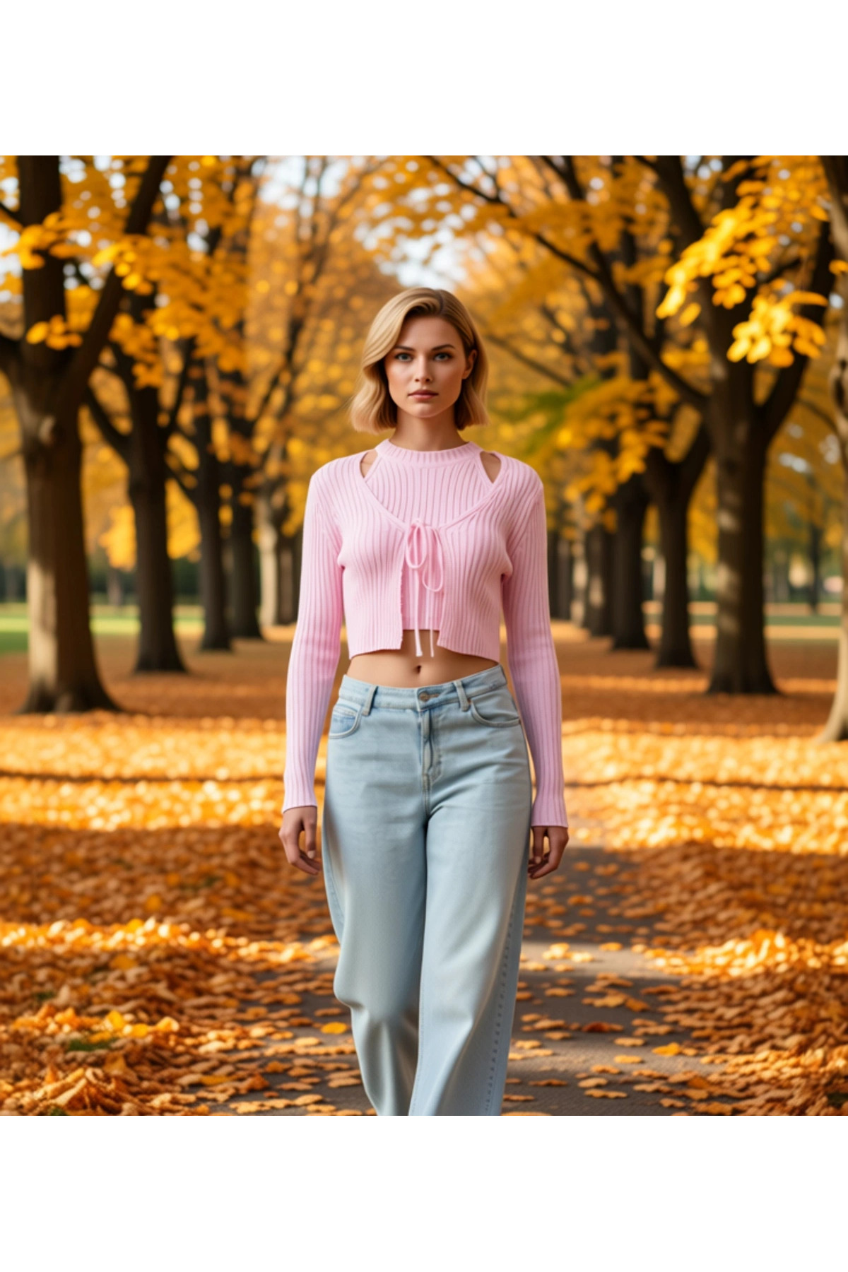 Kadın Dokulu Yumoş İplik Bisiklet Yaka Uzun Kollu Crop Kesim Triko Hırka Günlük Şıklık Ve Konfor