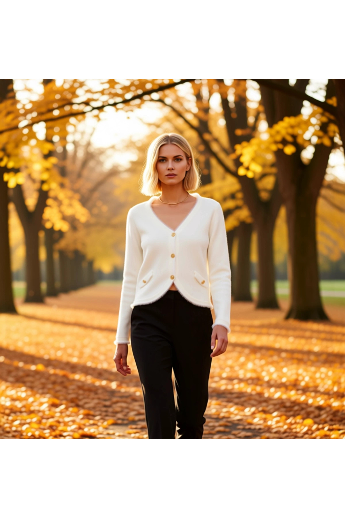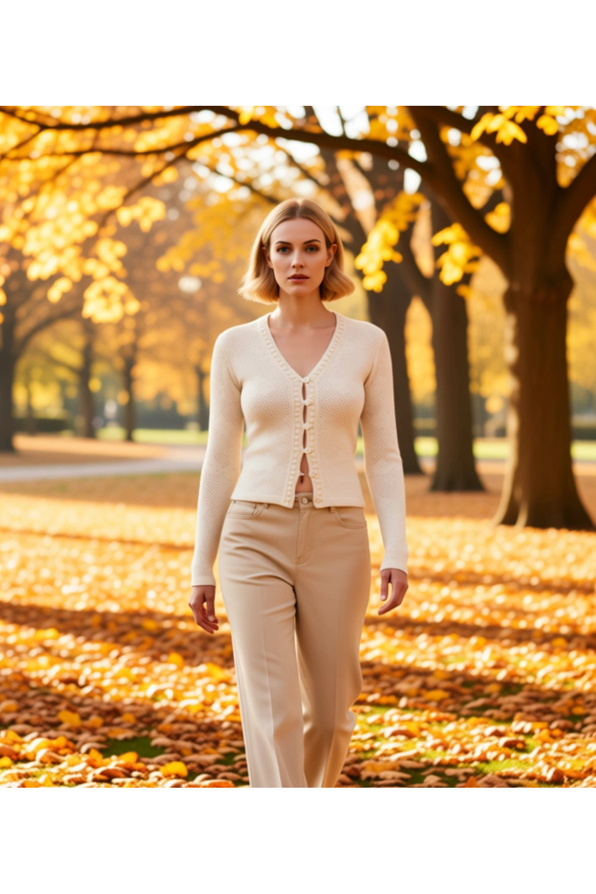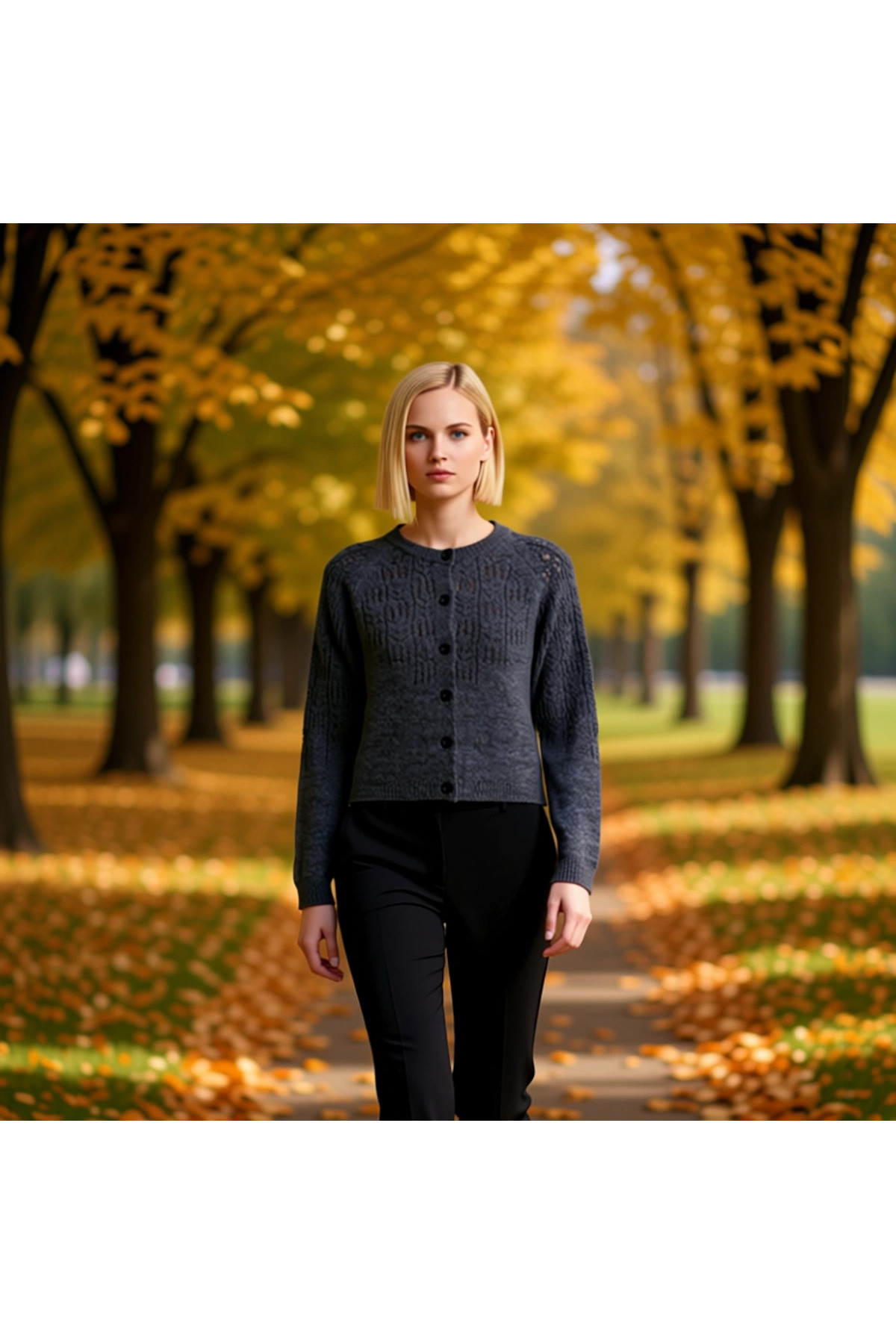 Kadın Şık ve Rahat Kısa Kesim Düğmeli Yumuşak Dokulu Ajurlu Delikli Triko Hırka Günlük Kullanım