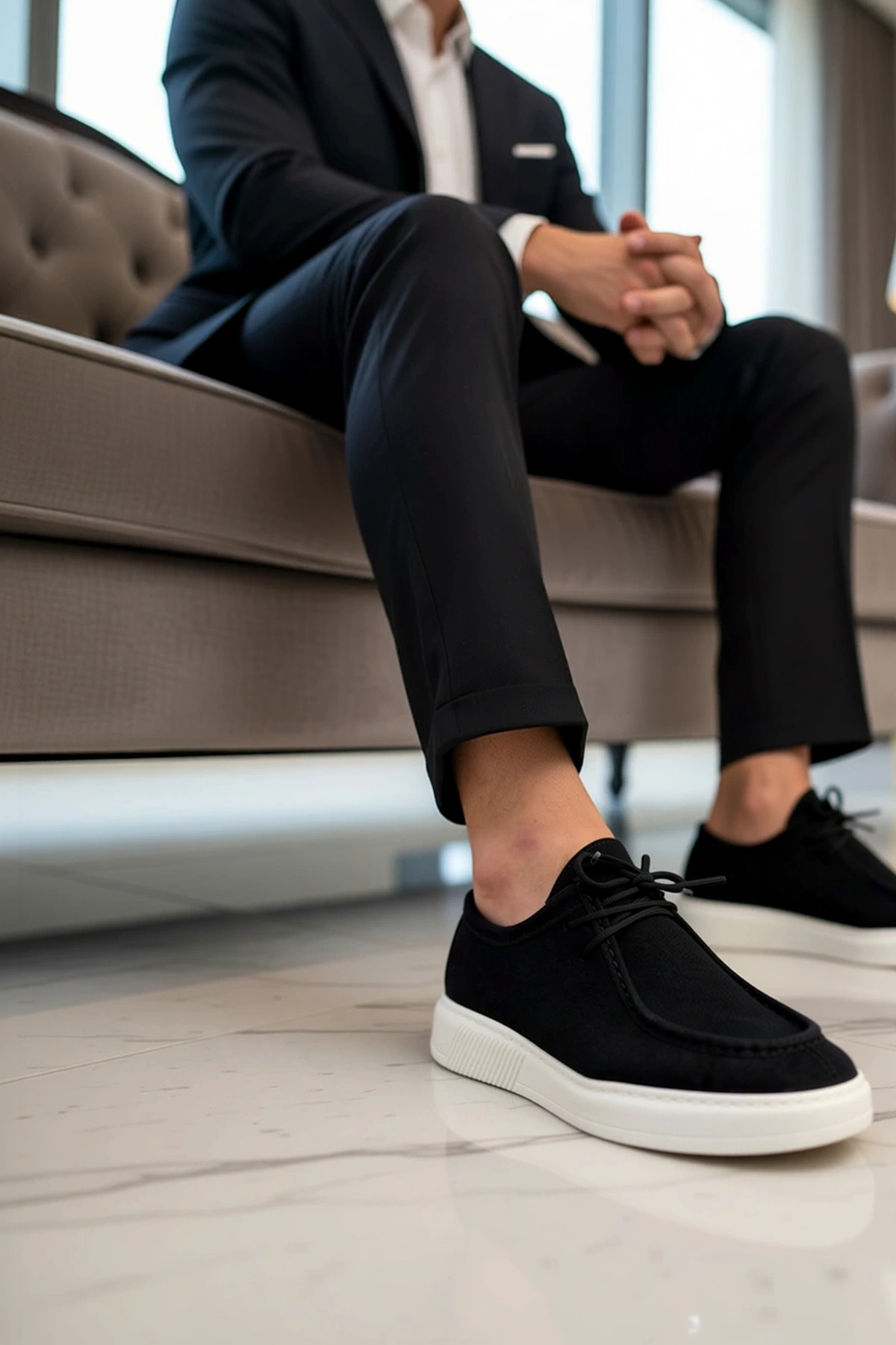 Erkek Bağcıklı Düz Taban Deri Görünümlü Ayakkabı Fonksiyonel Dayanıklı Kaliteli Konforlu Şık
