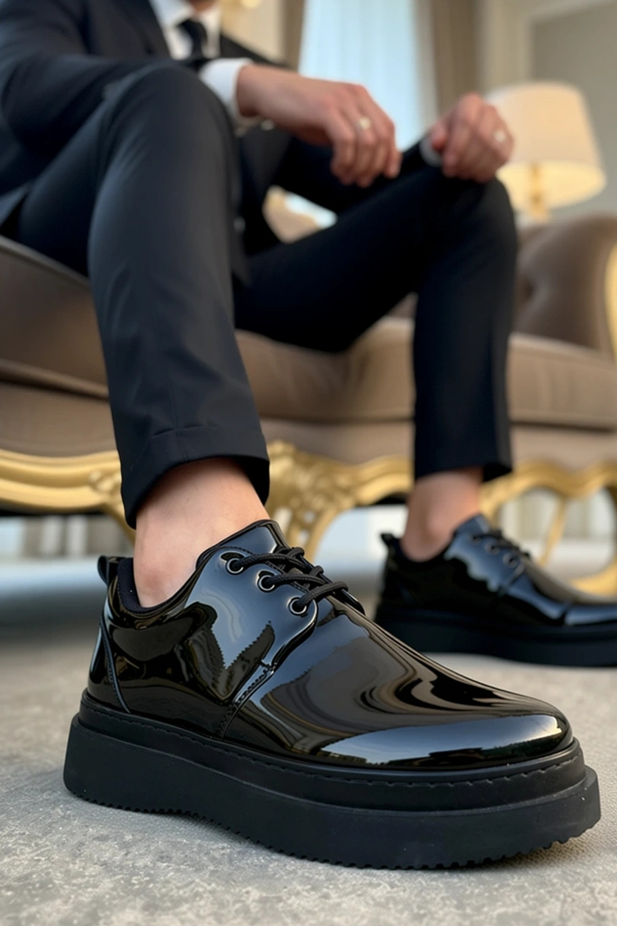 Erkek Bağcıklı Rugan Spor Ayakkabı Standart Kalıp Deri Fonksiyonel Dayanıklı Kaliteli Rahat