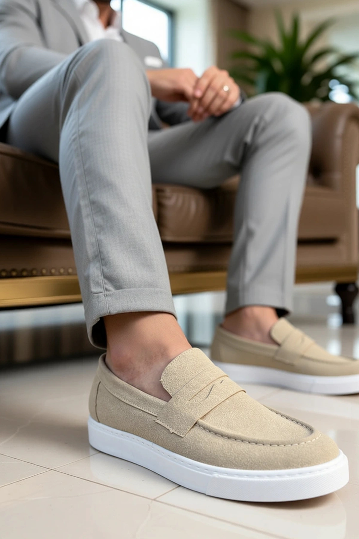 Erkek Deri Bağcıksız Spor Ayakkabı Yuvarlak Burun Düz Taban Fonksiyonel Dayanıklı Kaliteli