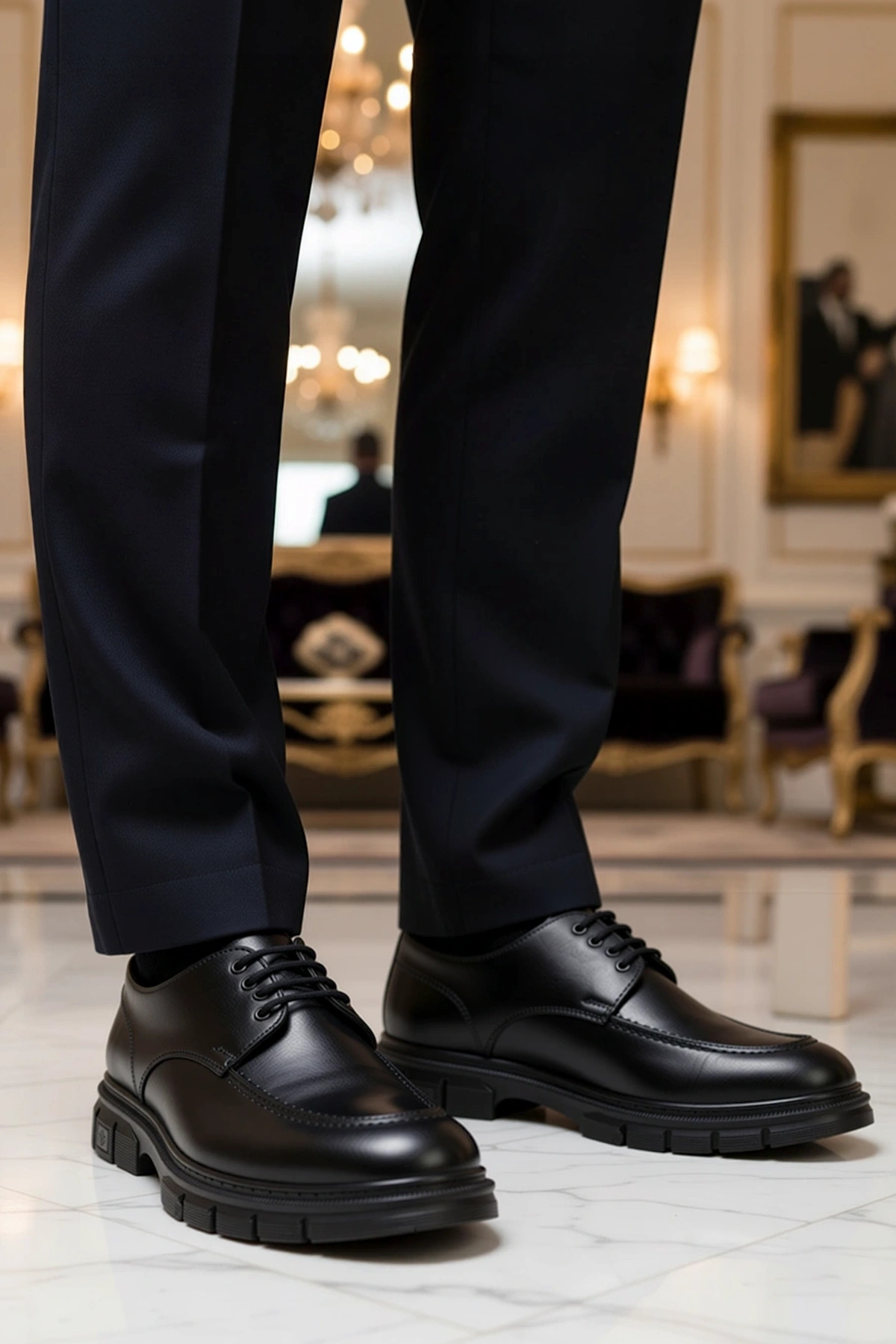 Erkek Bağcıklı Kalın Taban Deri Ayakkabı Fonksiyonel Dayanıklı Kaliteli Konforlu Estetik Şık