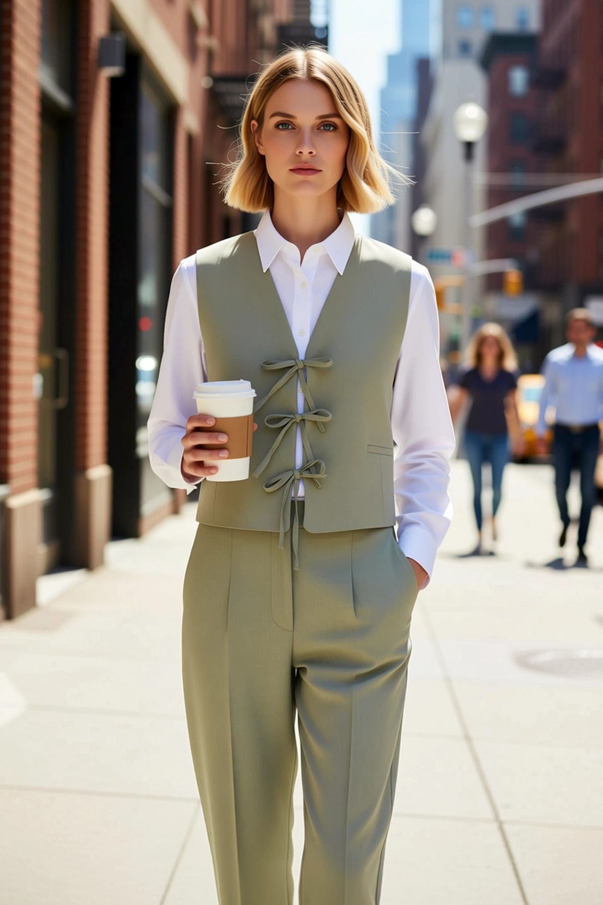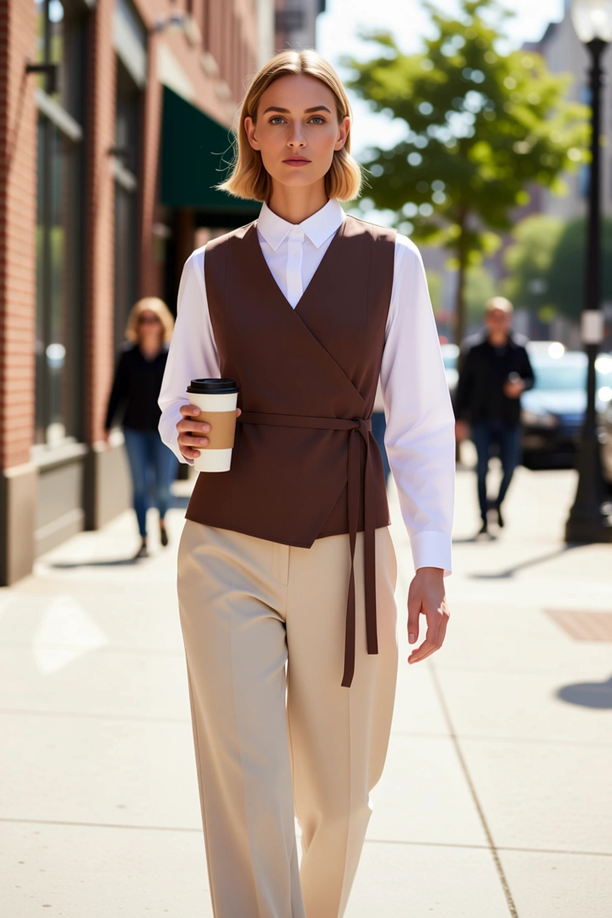 Kadın Kruvaze Yaka Kolsuz Fitted Kalıp Anvelop Kapamalı Kemerli Dokuma Yelek Astarlı Regular Boy