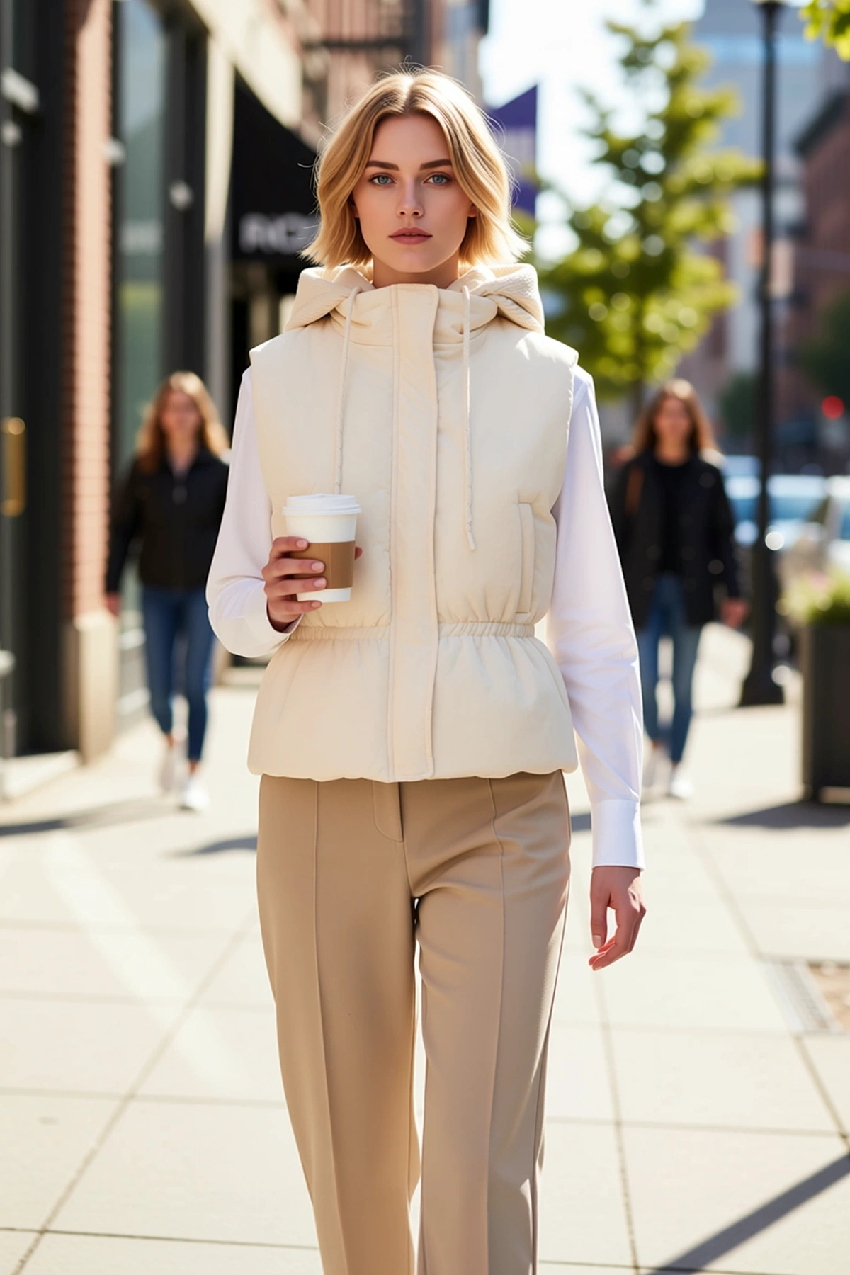 Kadın Bisiklet Yaka Kolsuz Fitted Crop Dokuma Kumaş Yelek Düz Desen Astarlı Basic Siluet Modern