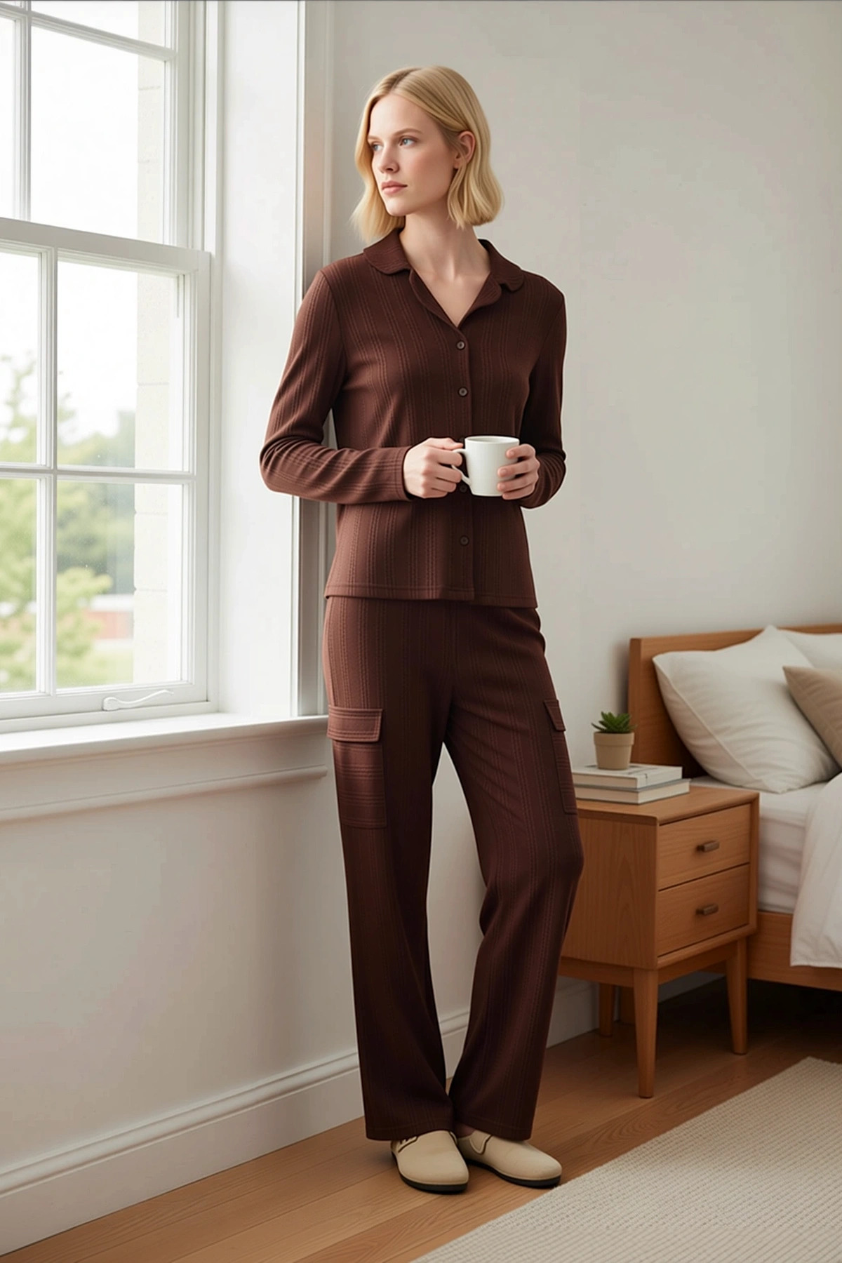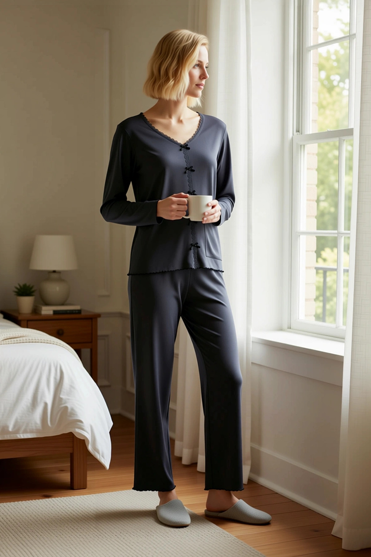 Kadın Bisiklet Yaka Uzun Kol Regular Kalıp Pijama Takımı Fonksiyonel Dayanıklı Şık 0 Pamuk