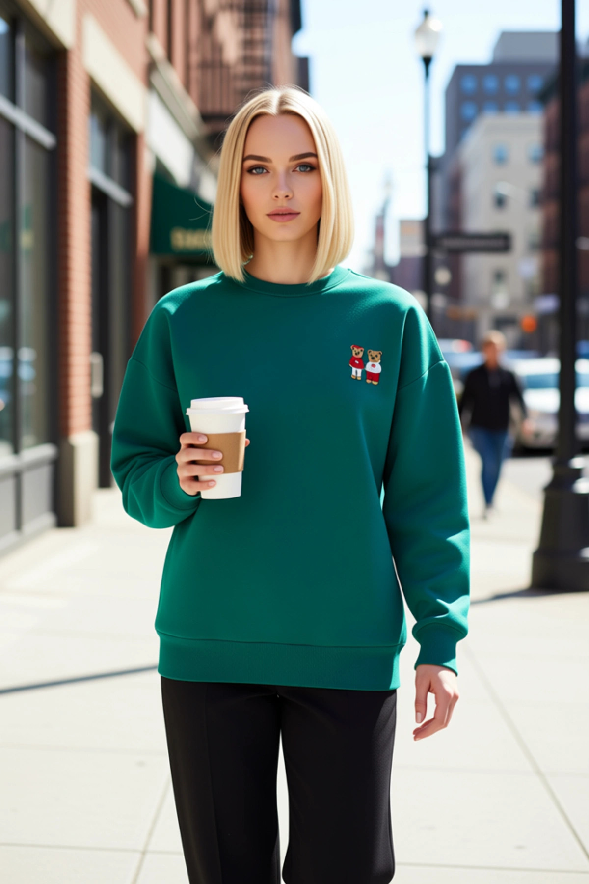 Kadın Bisiklet Yaka Düşük Kol Nakışlı Regular Kalıp Sweatshirt Fonksiyonel Dayanıklı Rahat