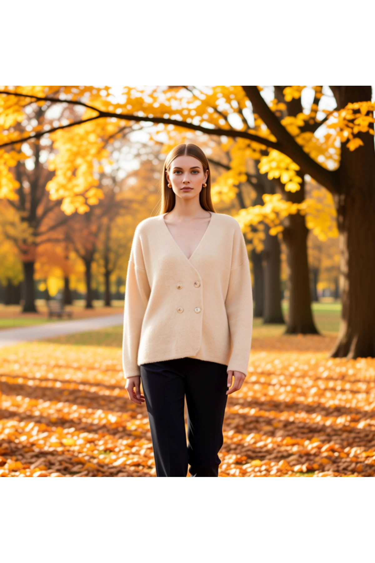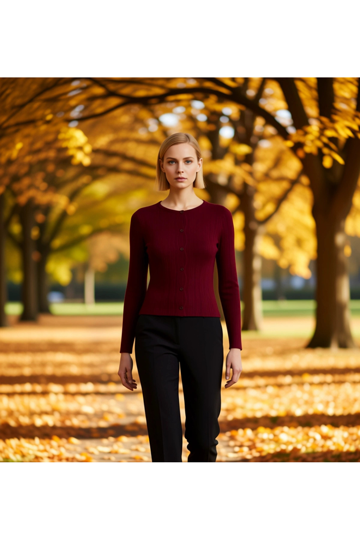 Kadın Polo Yaka Kontrast Dikiş Detayları İle Şık Ve Konforlu Uzun Kollu Regular Fit Triko Hırka