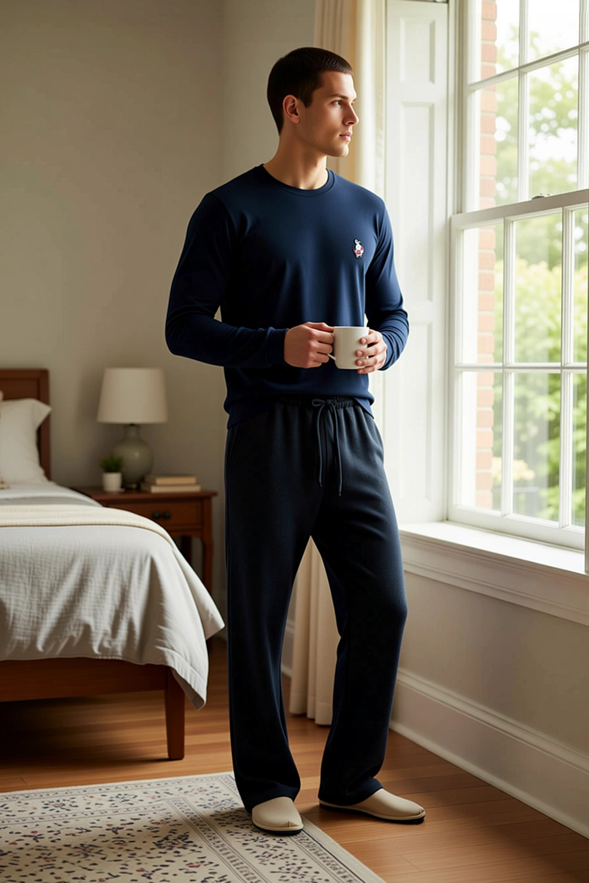 Erkek V Yaka Uzun Kol Regular Fit Çizgili Pijama Takımı Fonksiyonel Dayanıklı Şık 0 Pamuk