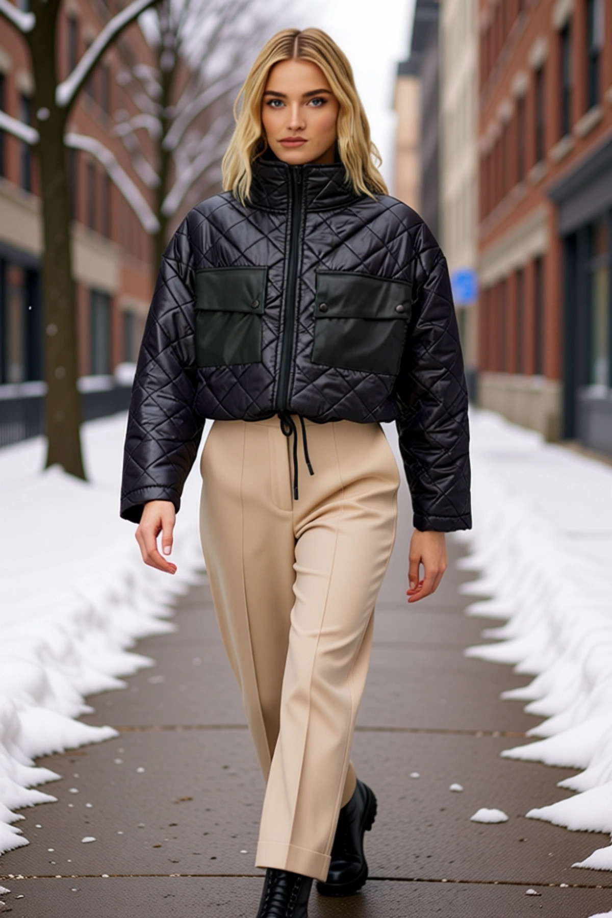 Kadın Gömlek Yaka Standart Kol Kapitone Mont Fonksiyonel Dayanıklı Kaliteli Konforlu Rahat